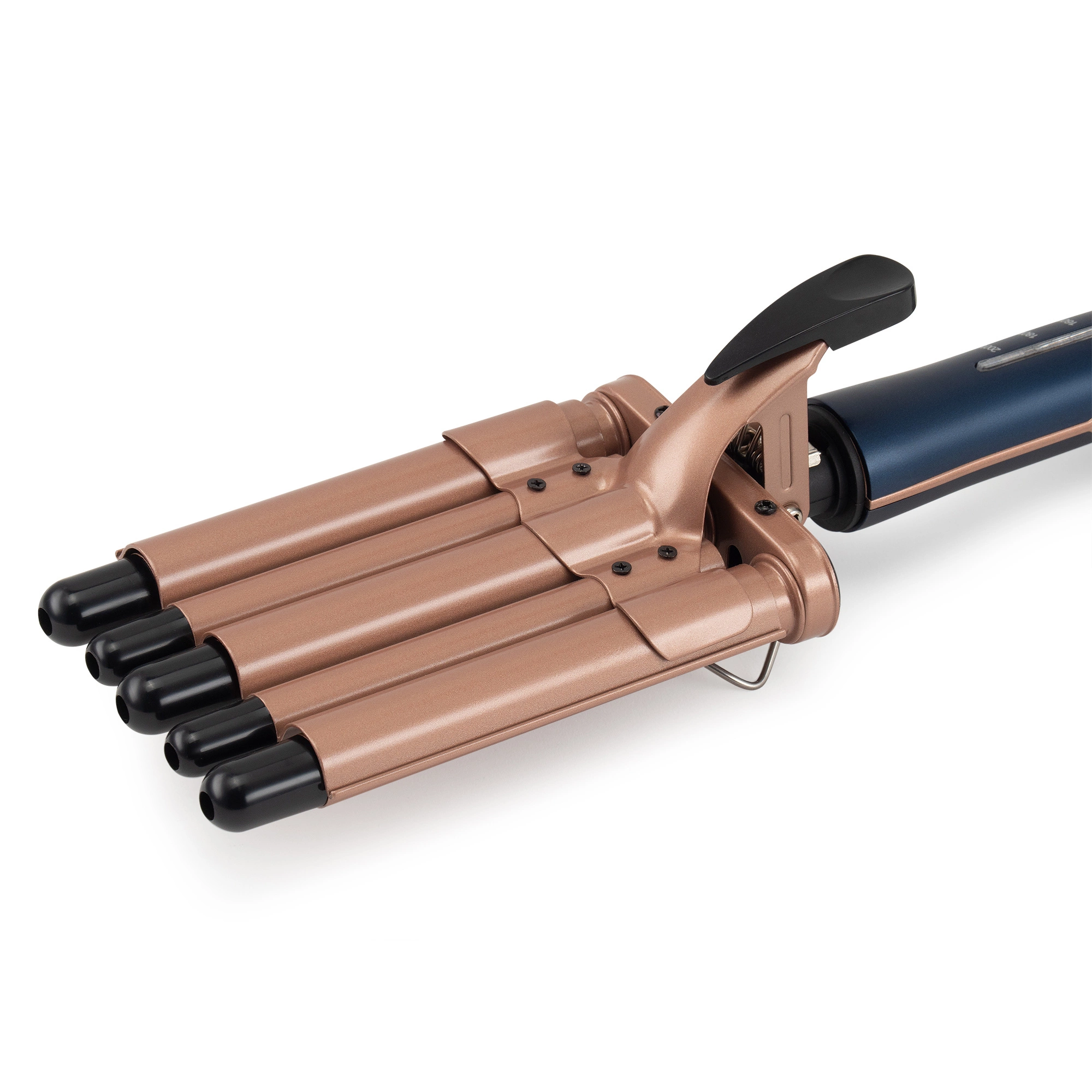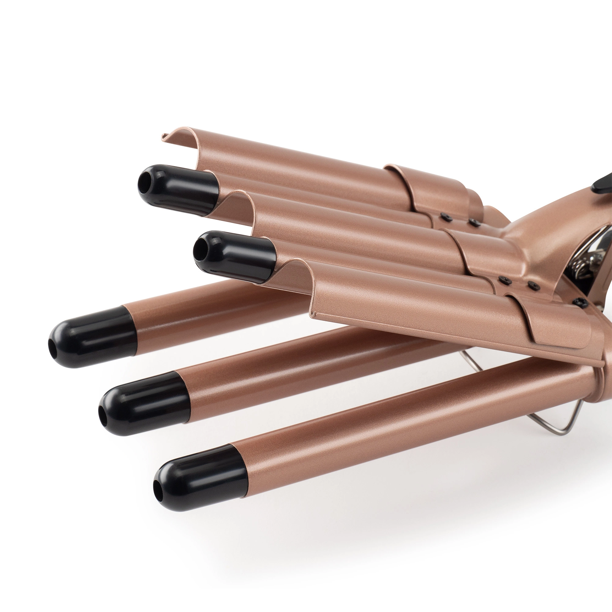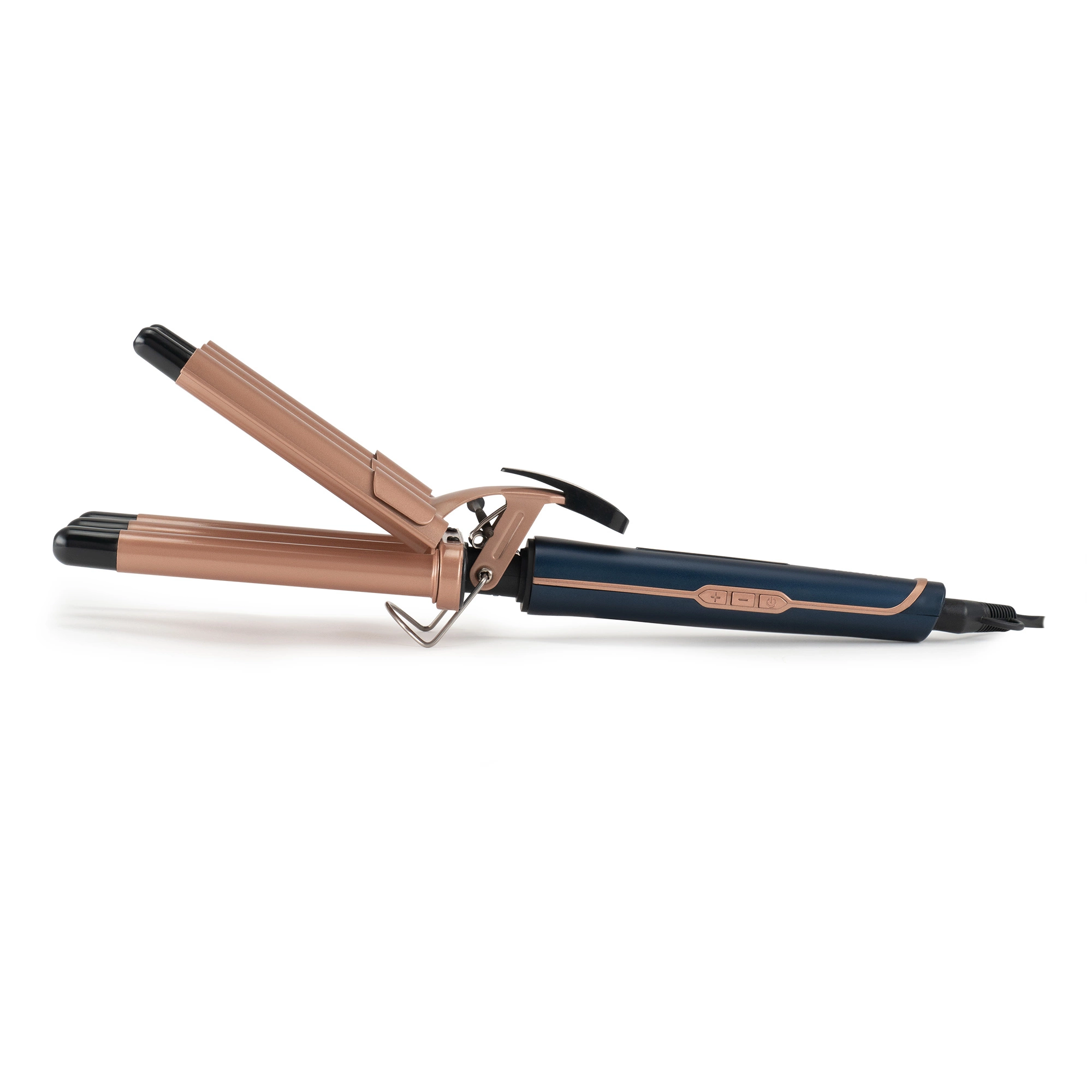 Прибор имеет наилучший форм-фактор для создания локонов, нежных волн и кудрей. Предусмотренная мощность 90 Ватт позволяет щипцам разогреваться до максимальных 200 градусов за считанные мгновения. При этом нагревательный элемент имеет конструкцию типа РТС, что позволяет прибору быть энергоэффективным и не потреблять лишнего. Кроме того, пластины, контактирующие с шевелюрой, изготовлены из керамики, которая отличается равномерным нагревом и бережным отношениям к волосам.