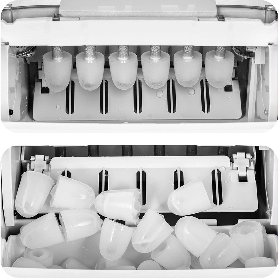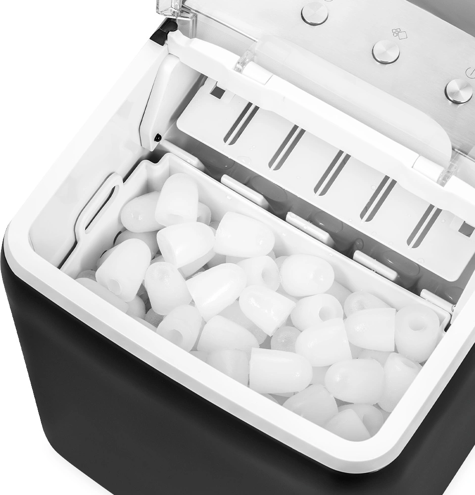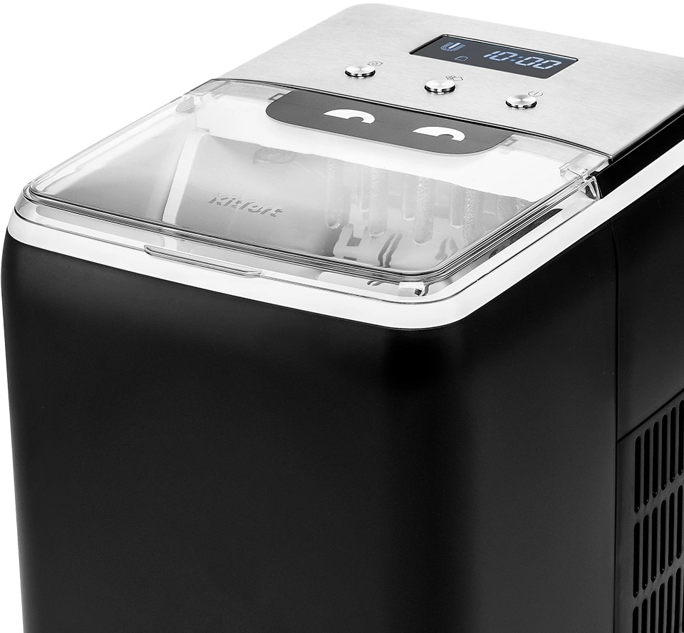 Из-за оригинальной технологии приготовления лёд получается в виде напёрстков. Толщина у них небольшая, поэтому лёд легко измельчается блендером. Благодаря инфракрасному датчику заполнения корзины, при её переполнении генерация льда автоматически прекращается.