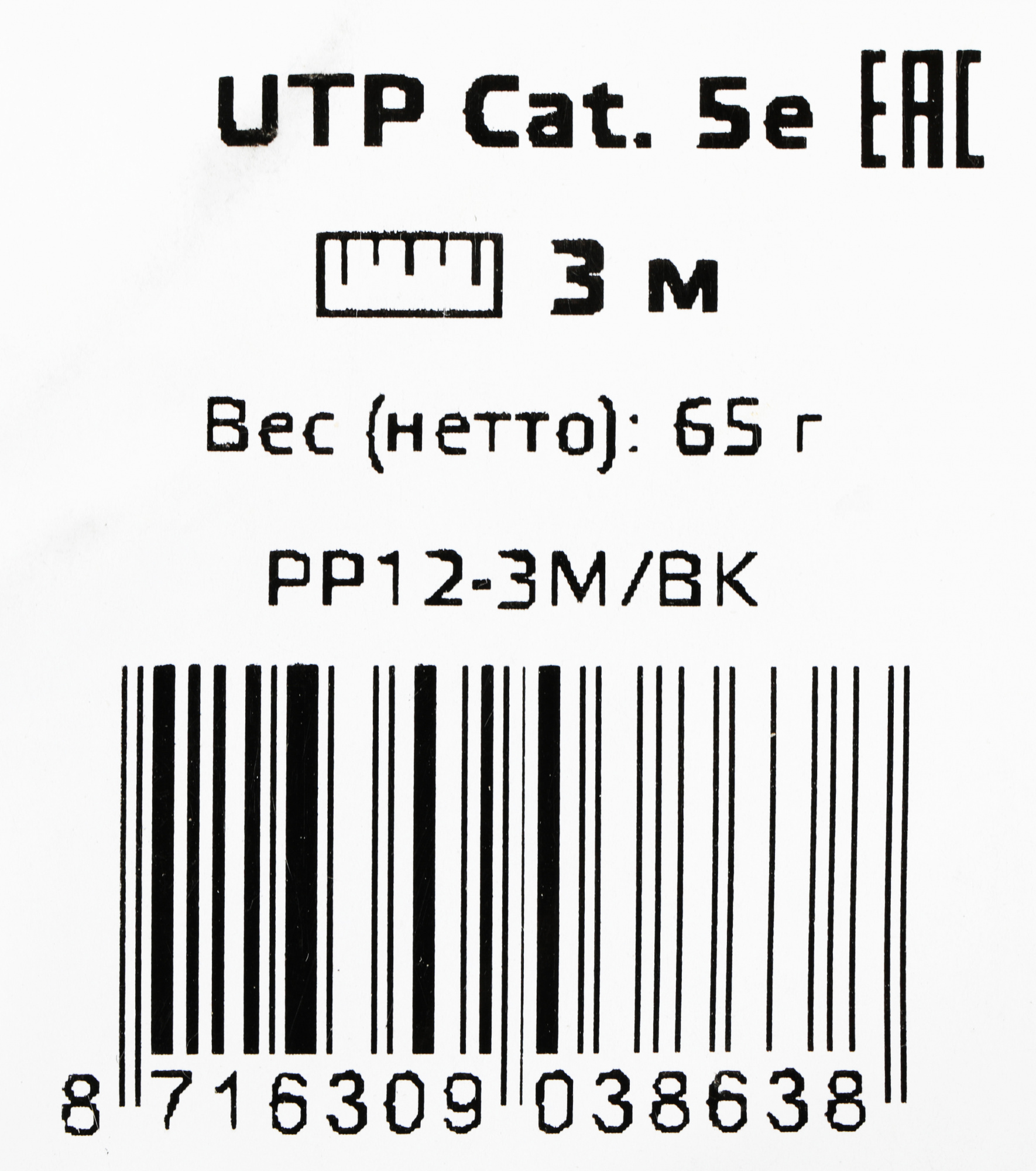 1000Гбит/с UTP 4 пары cat.5E CCA molded 3м черный ...