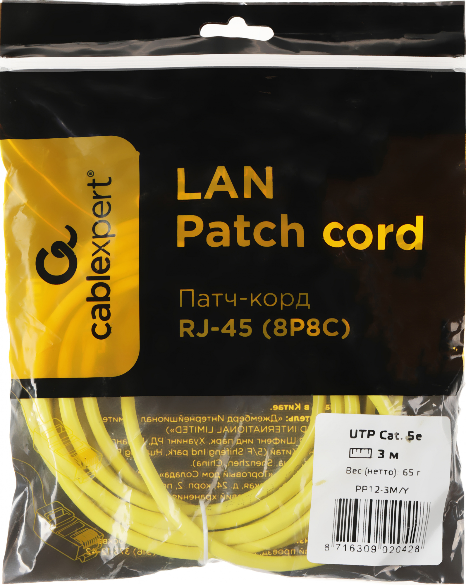1000Гбит/с UTP 4 пары cat.5E CCA molded 3м желтый ...