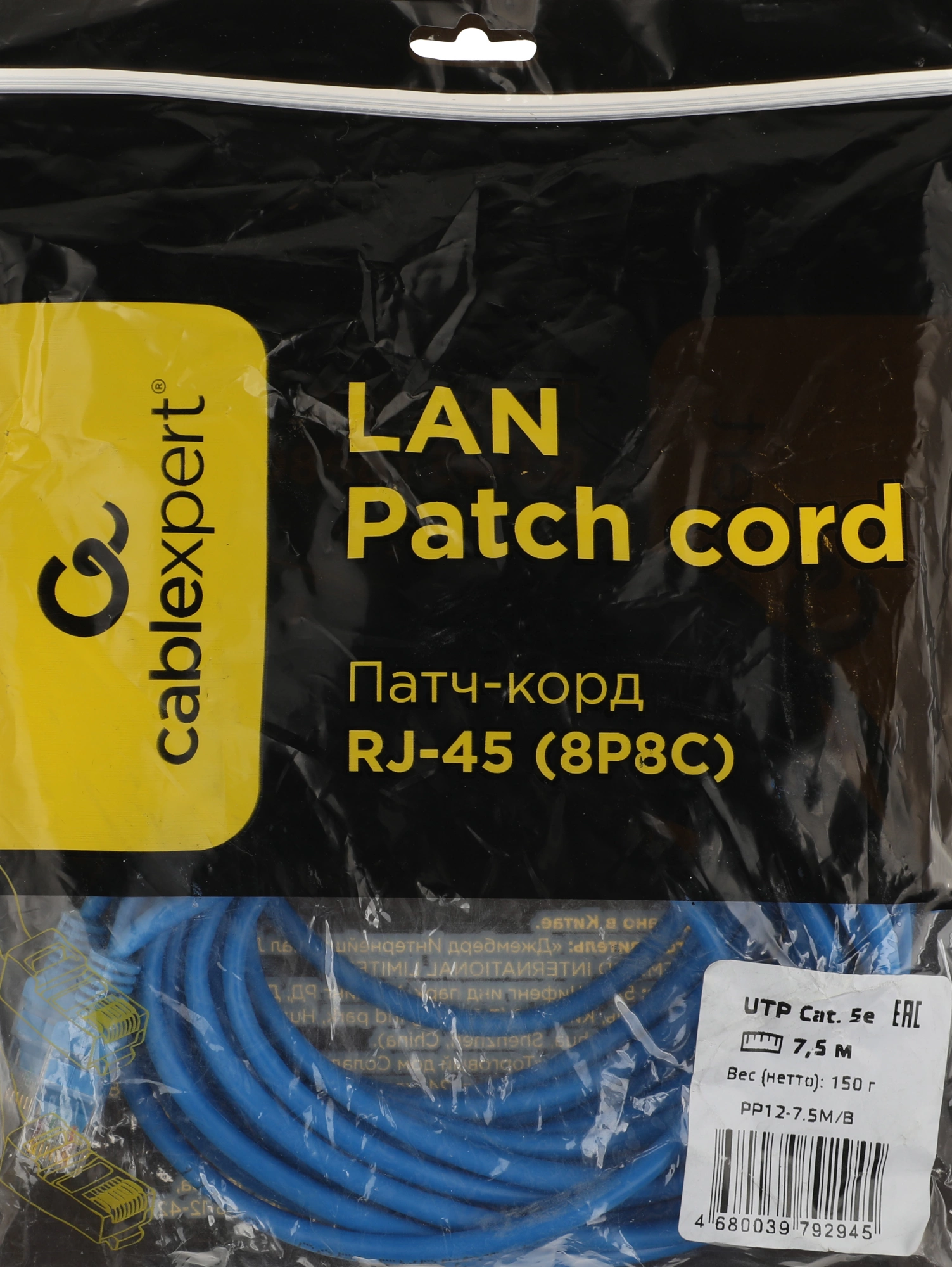 1000Гбит/с UTP 4 пары cat.5E CCA molded 7.5м синий...