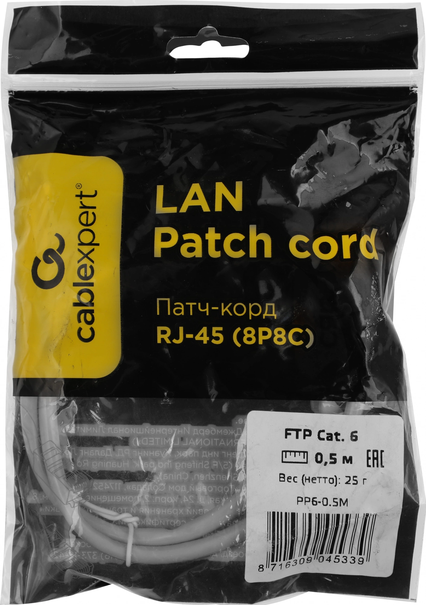 10000Гбит/с FTP 4 пары cat.6 CCA molded 0.5м серый...