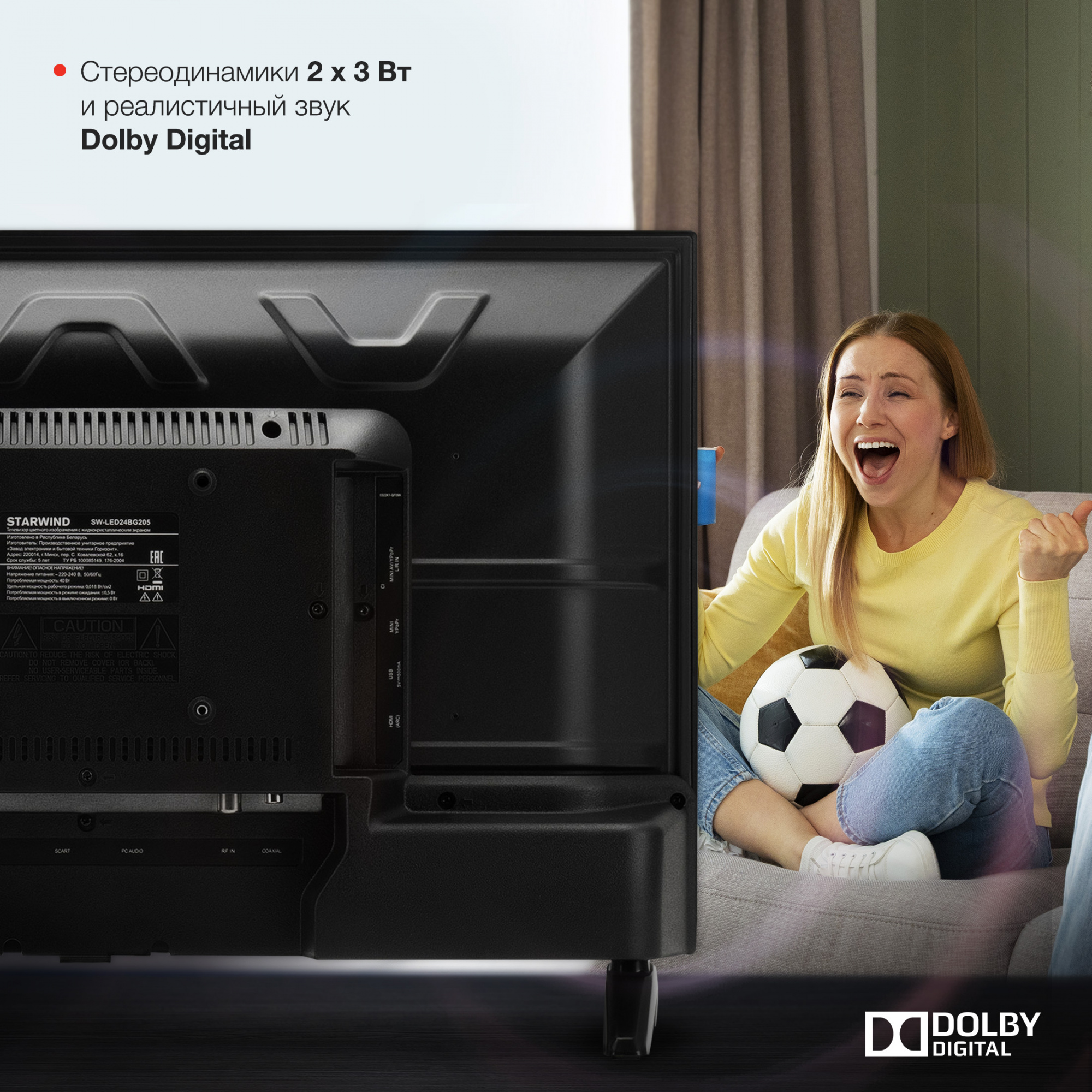 Starwind 24" SW-LED24BG205 – это телевизор с качественной жидкокристаллической матрицей, обеспечивающий живую и сочную картинку.