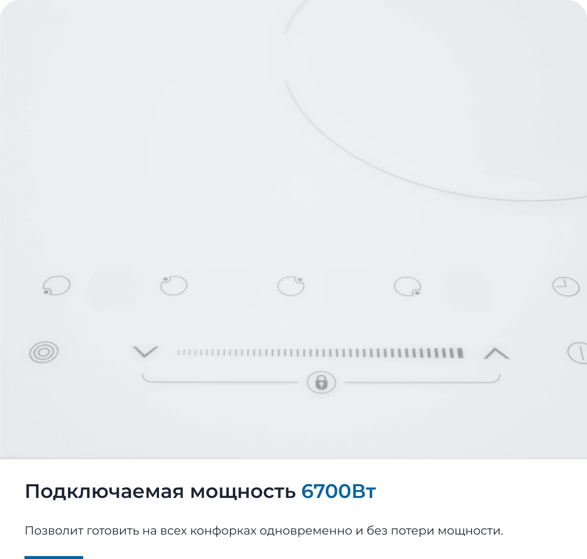 блокировка управления (защита от детей), защитное отключение, отключение при проливе жидкости