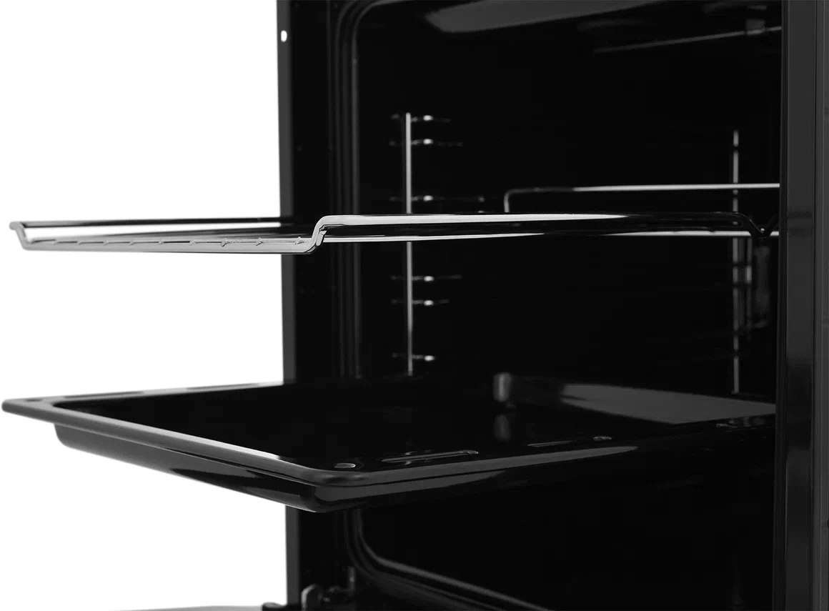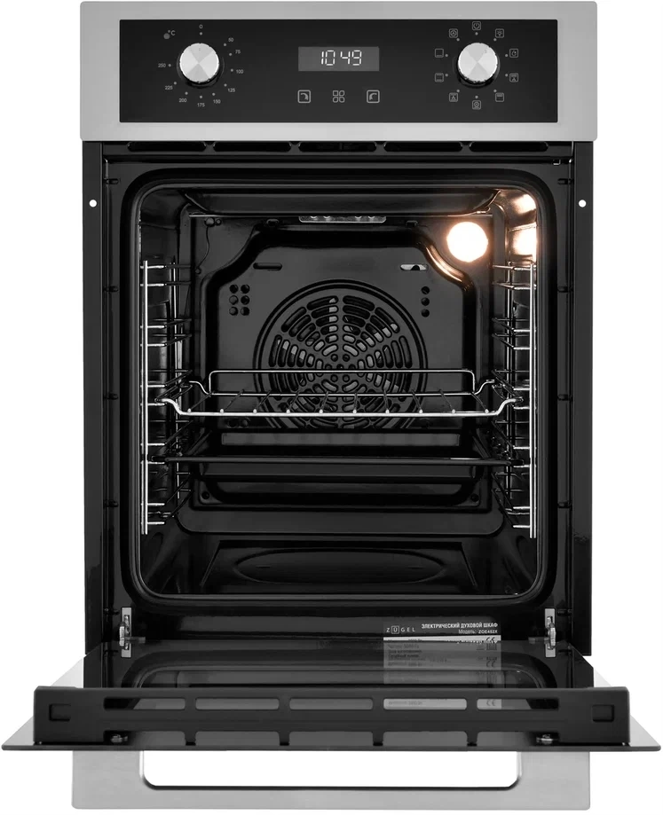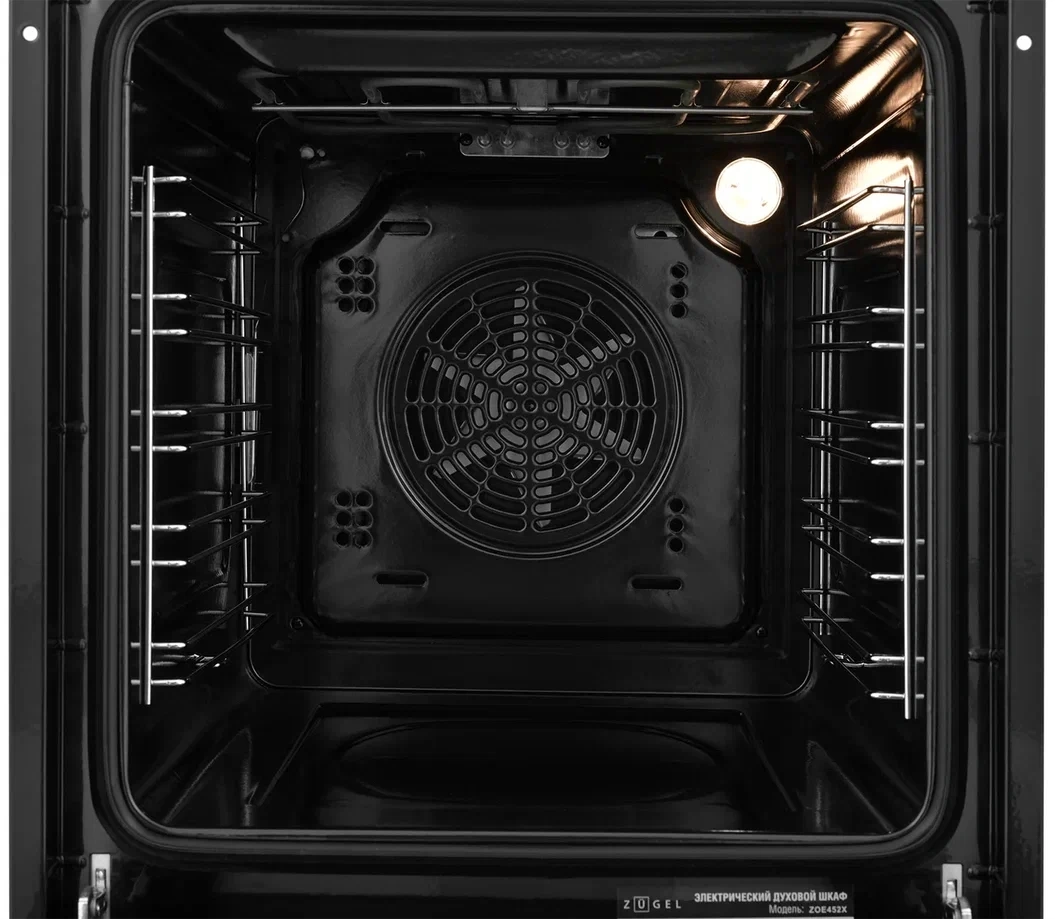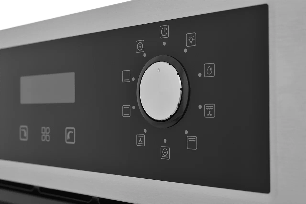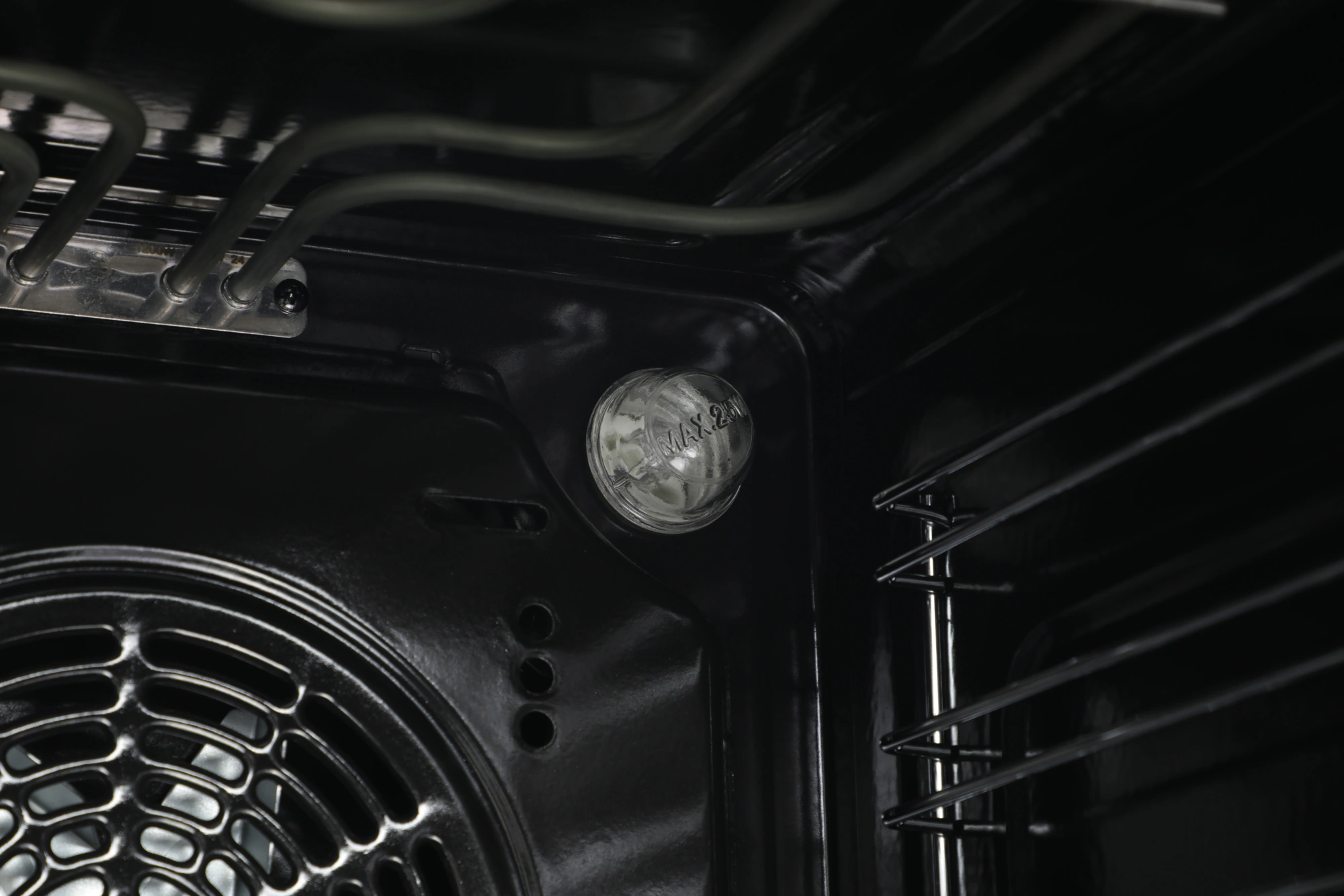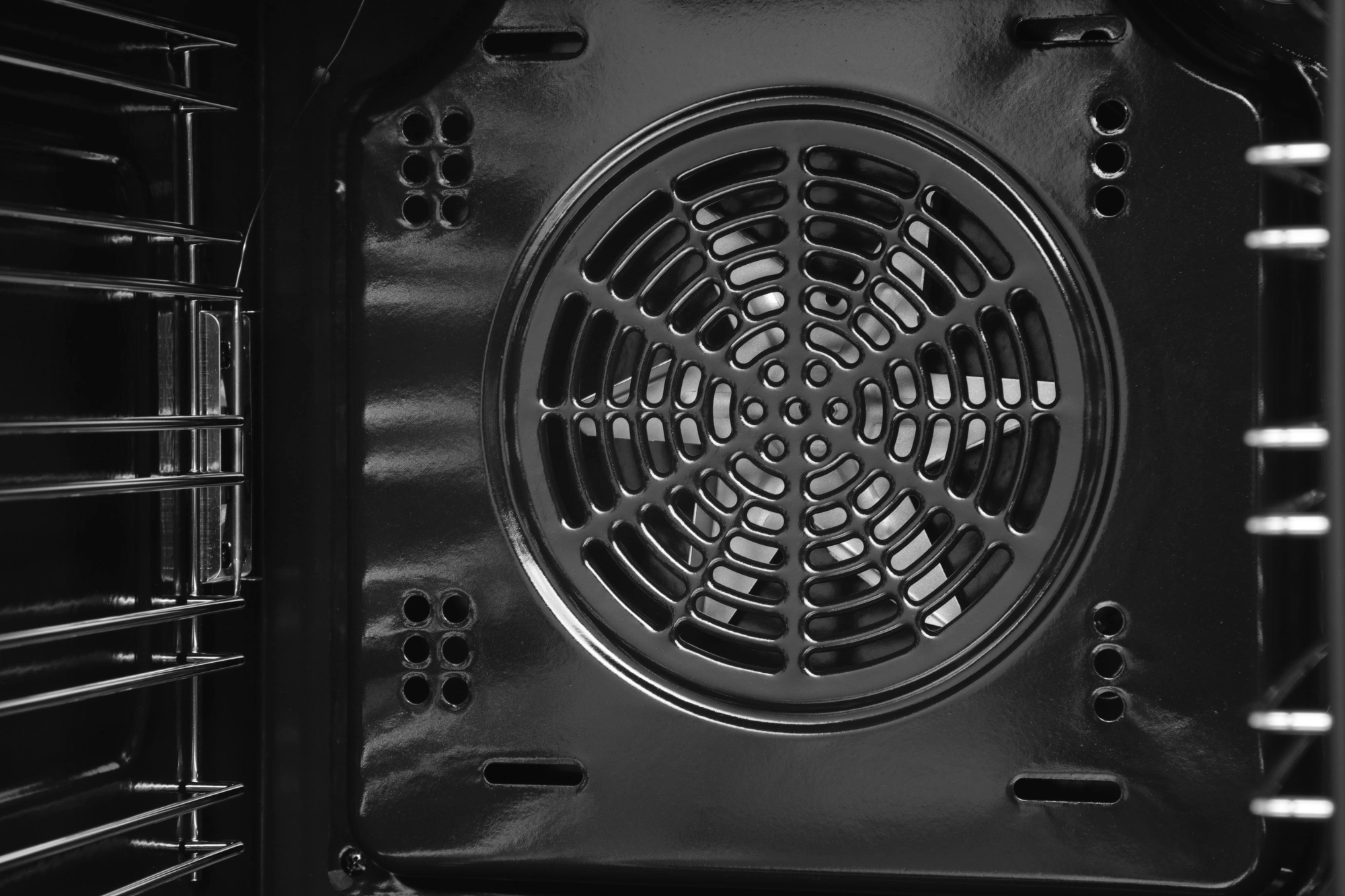 вентилятор охлаждения, дисплей, полностью стеклянная внутренняя поверхность дверцы духовки, утапливаемые переключатели, электронный программатор