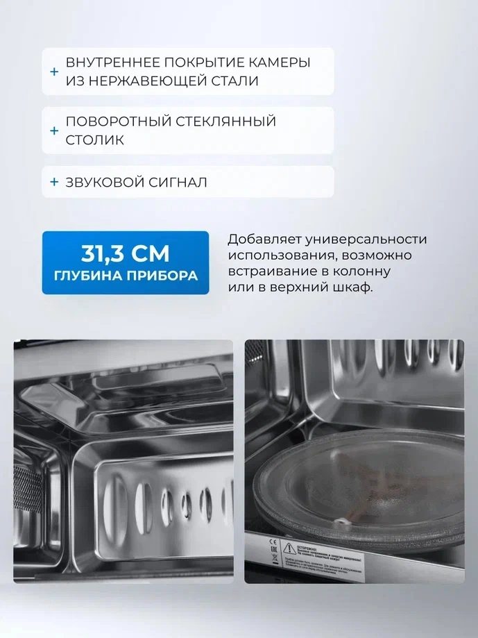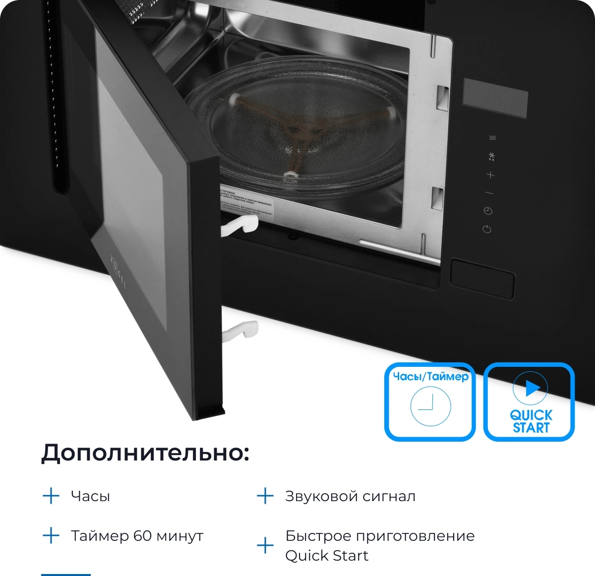 быстрый старт, звуковой сигнал окончания приготовления, пауза, регулировка мощности