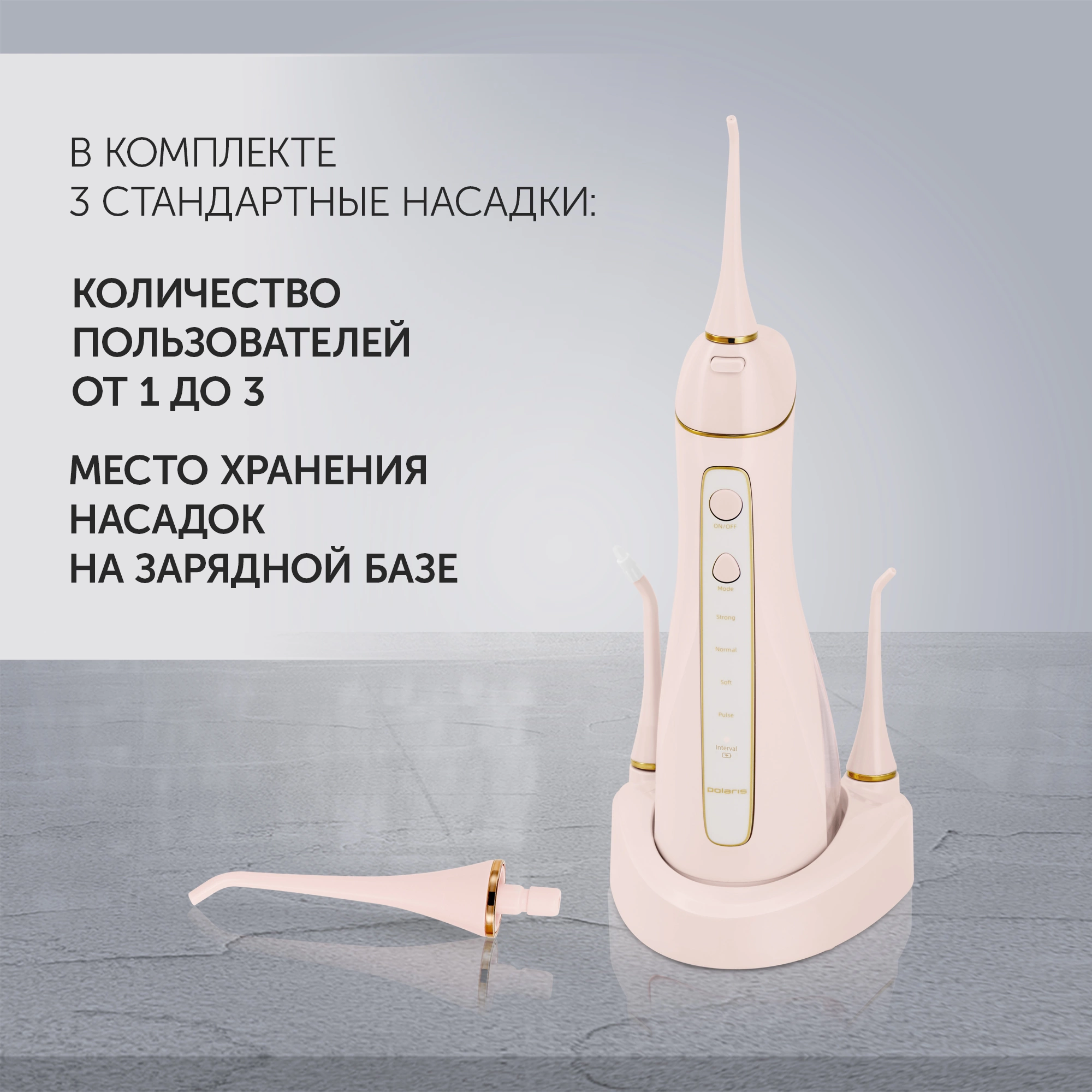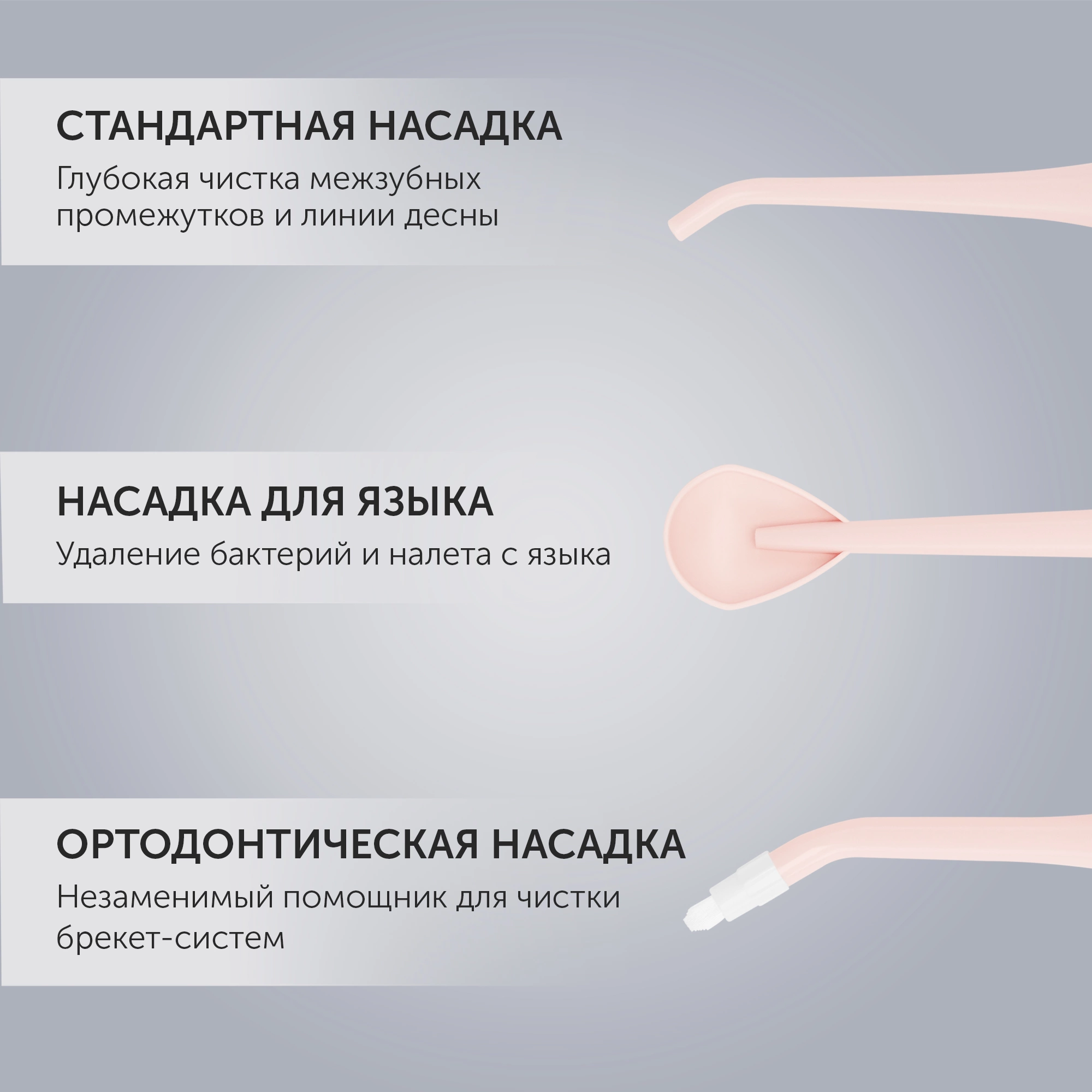 Низкий уровень шума, 5 режимов работы, индикатор уровня заряда, 5 насадок в комплекте, резервуар 220мл, влагозащита IPX7, эргономичный дизайн, бесконтактная зарядная база, 120 минут без подзарядки (в режиме Normal), автоматическое отключение, сумка для хранения и путешествий.