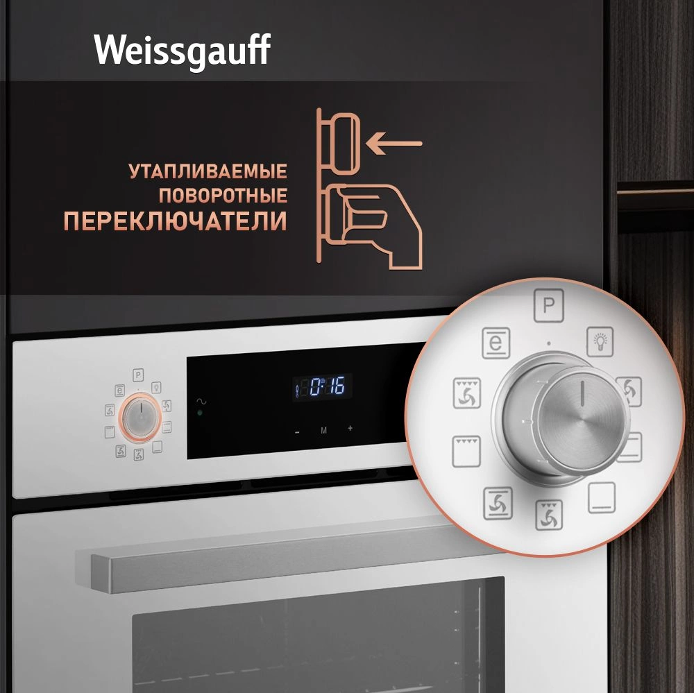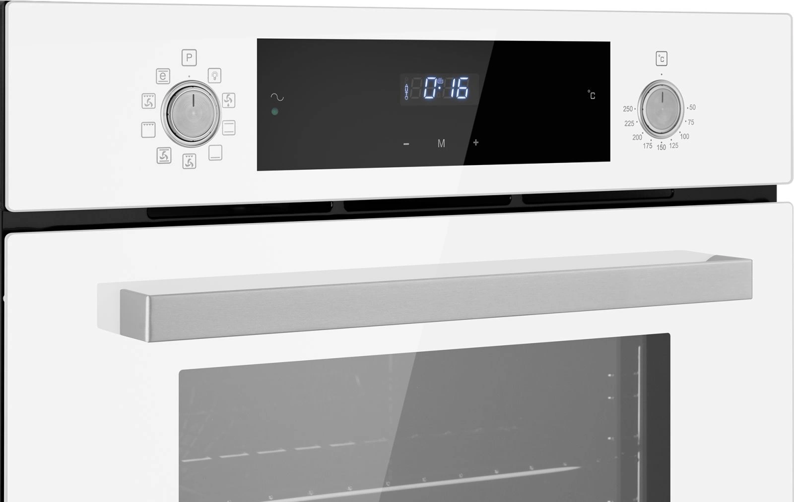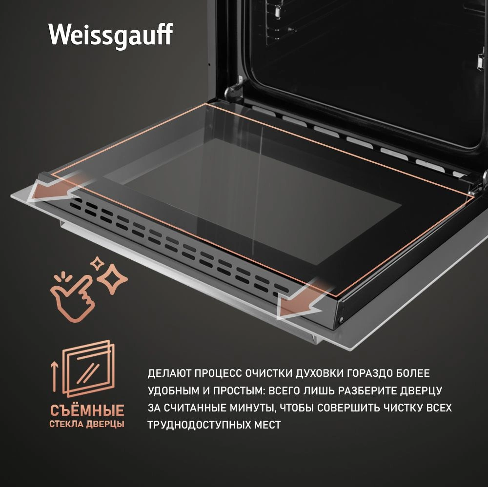 дисплей, полностью стеклянная внутренняя поверхность дверцы духовки, утапливаемые переключатели, электронный программатор