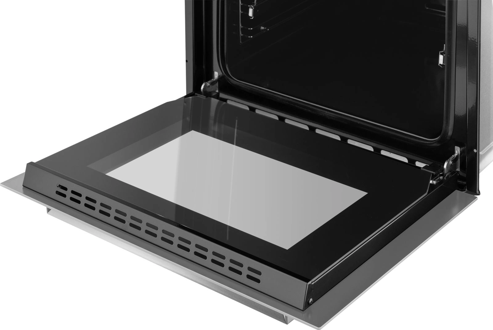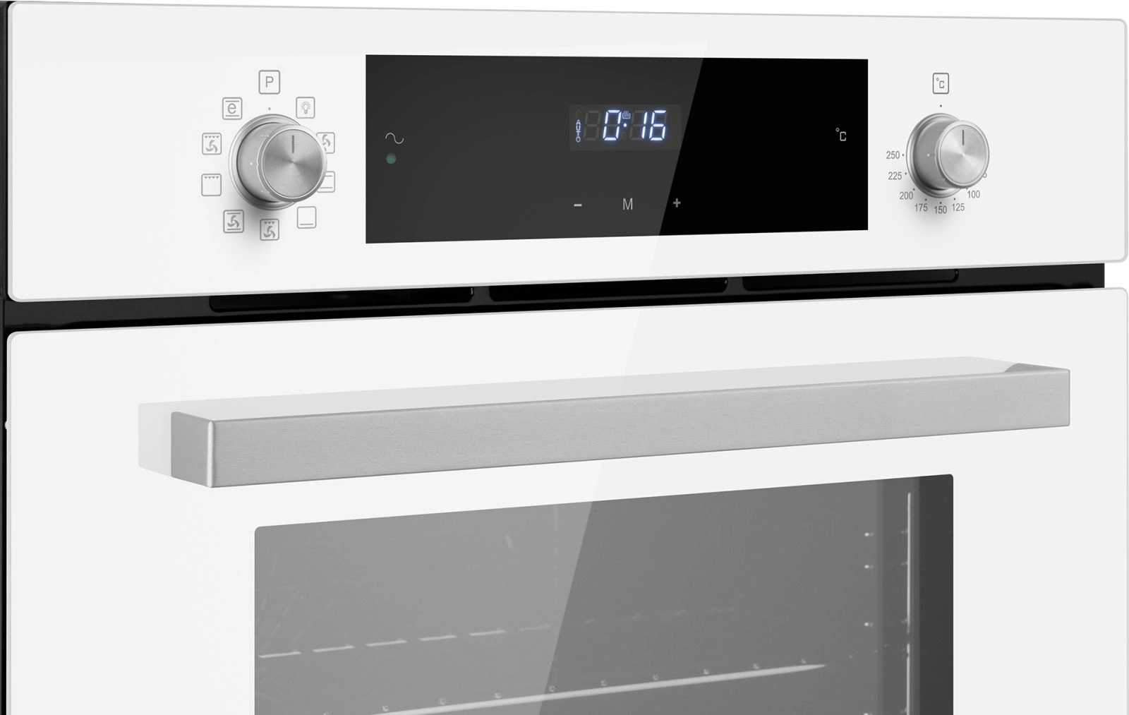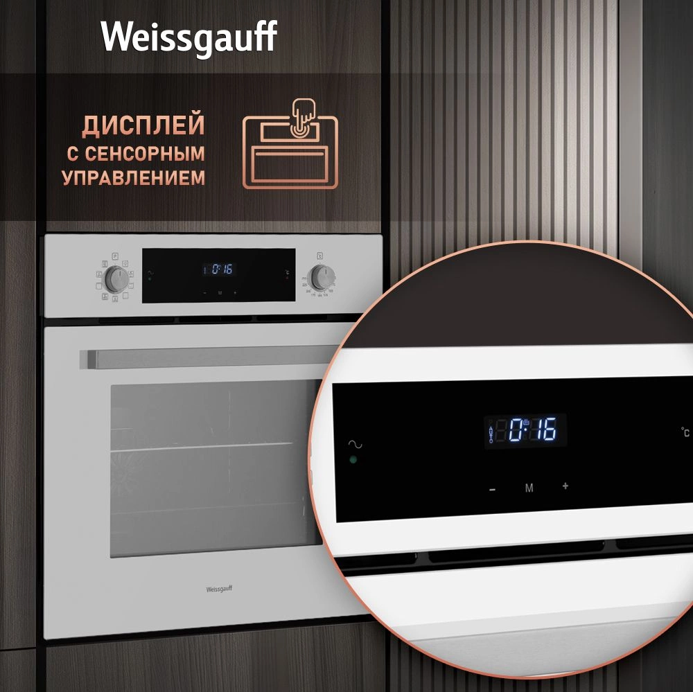 дисплей, полностью стеклянная внутренняя поверхность дверцы духовки, утапливаемые переключатели, электронный программатор