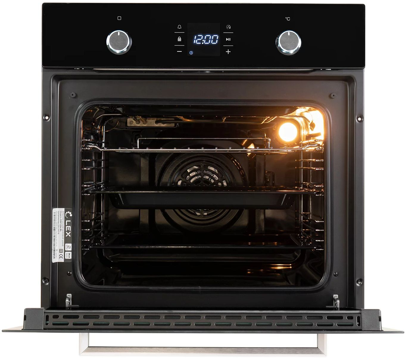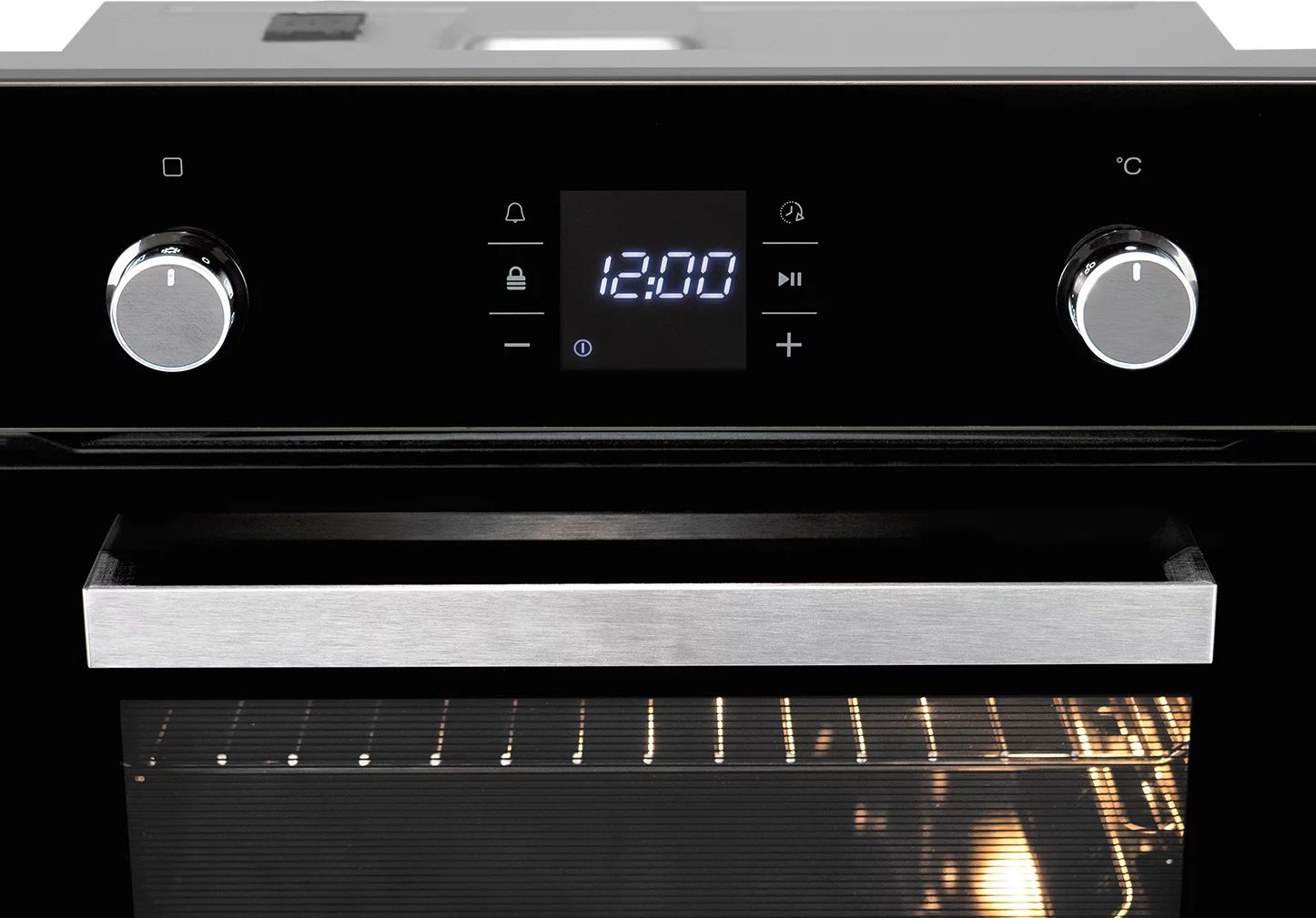 вентилятор охлаждения, дисплей, полностью стеклянная внутренняя поверхность дверцы духовки, утапливаемые переключатели
