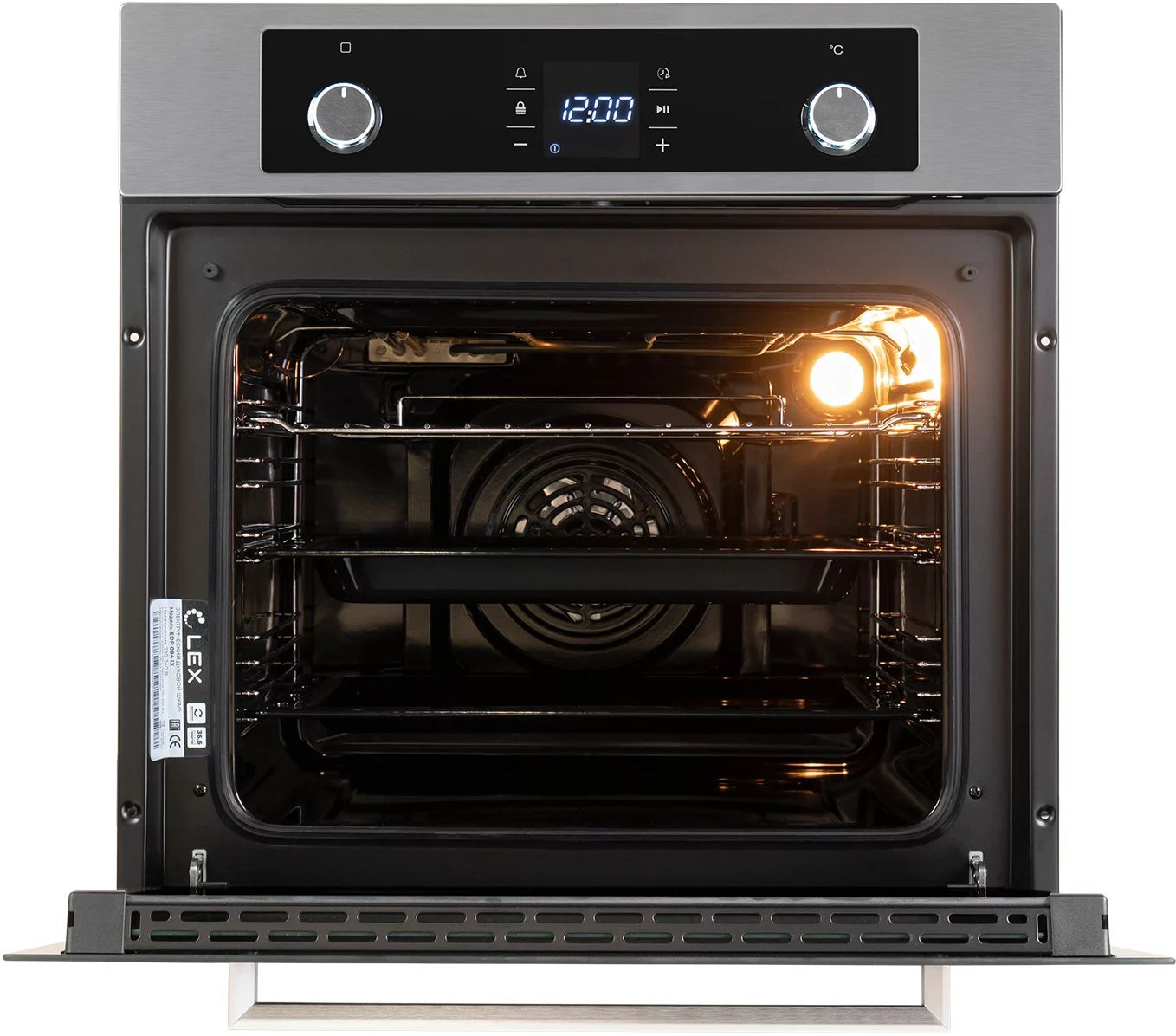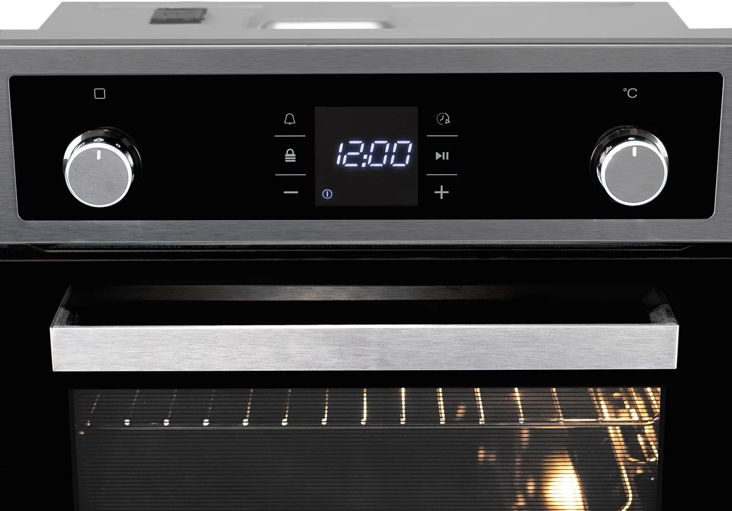 вентилятор охлаждения, дисплей, полностью стеклянная внутренняя поверхность дверцы духовки, утапливаемые переключатели