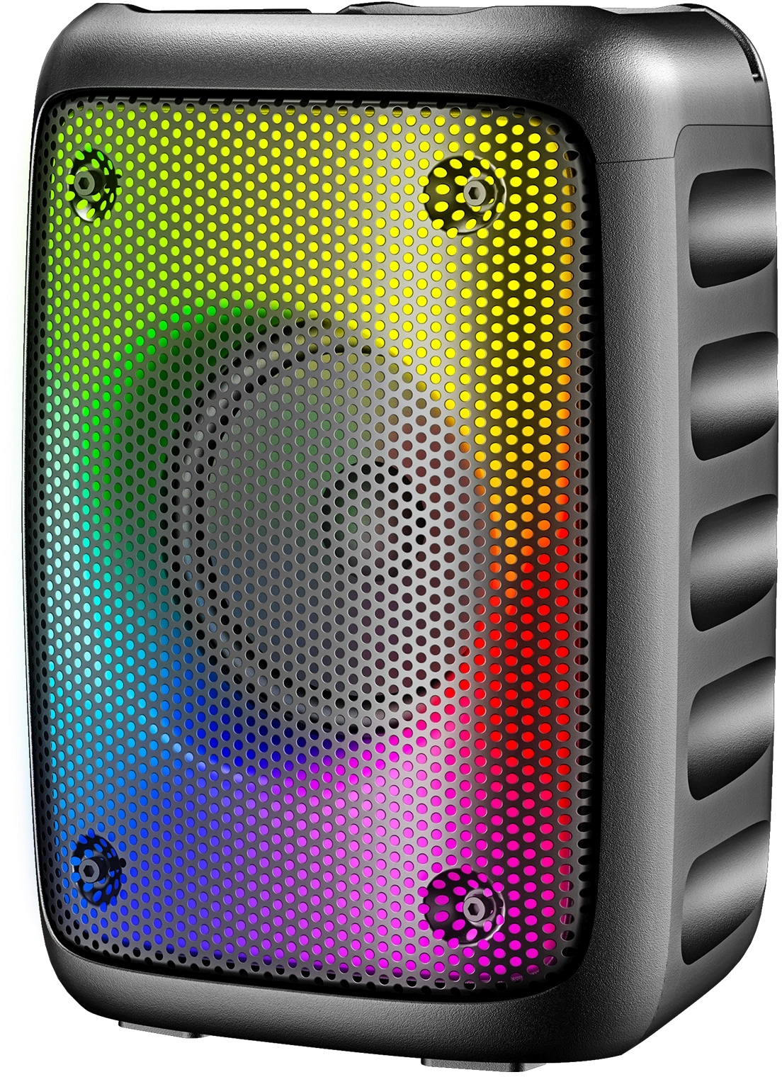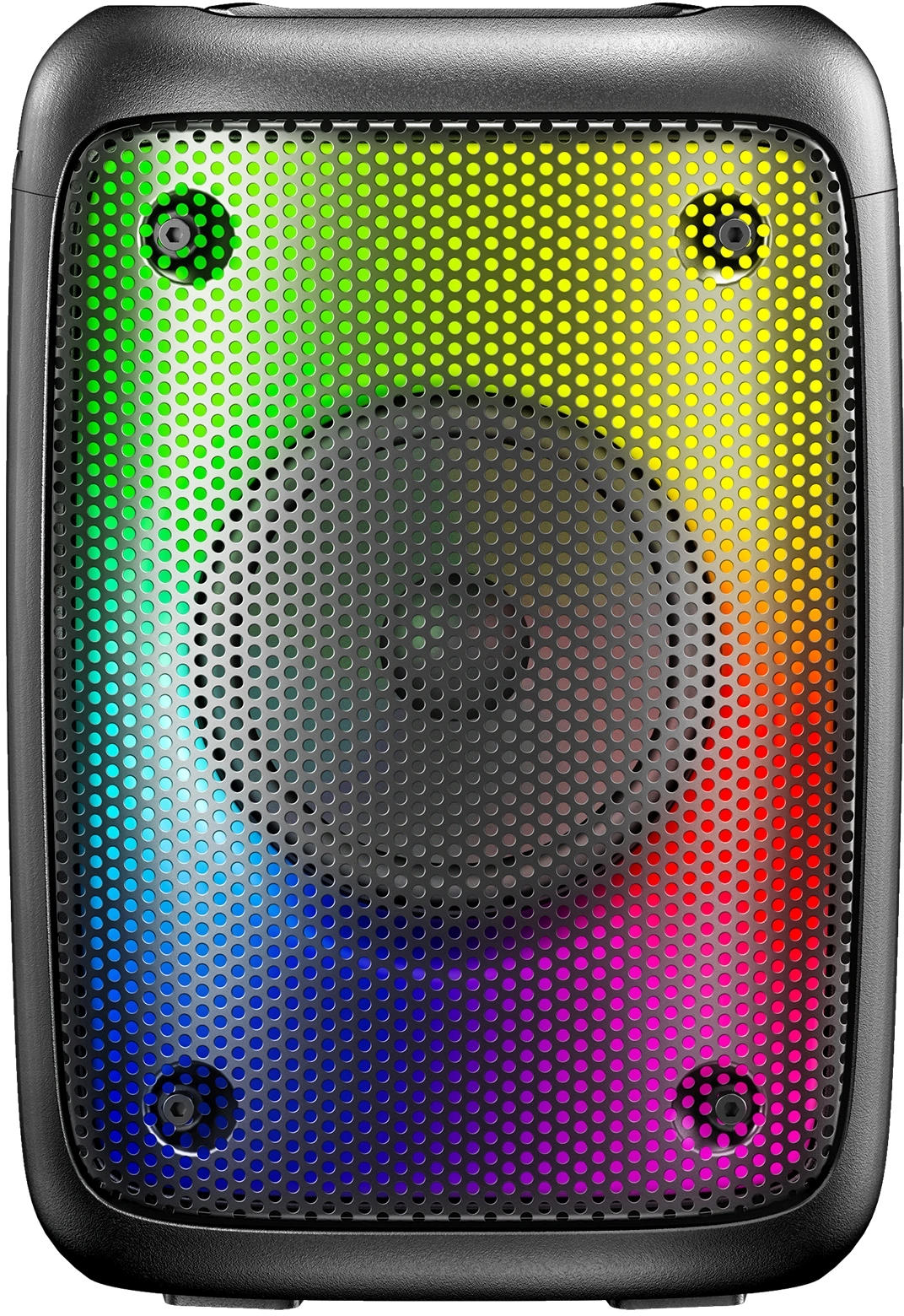 Воспроизведение музыки на Hyundai H-PS1006 сопровождается светомузыкой из RGB-подсветки, встроенной в переднюю панель. Для удобства переноски колонка имеет удобную ручку на верхнем ребре.