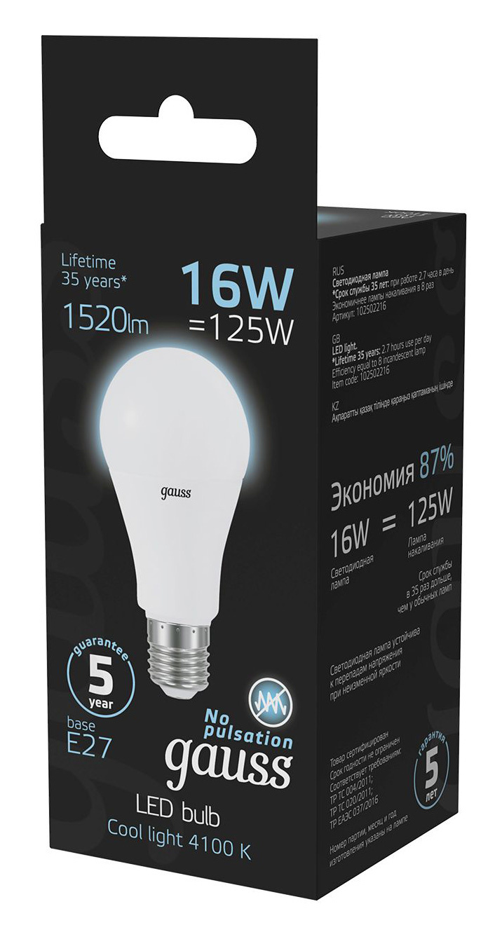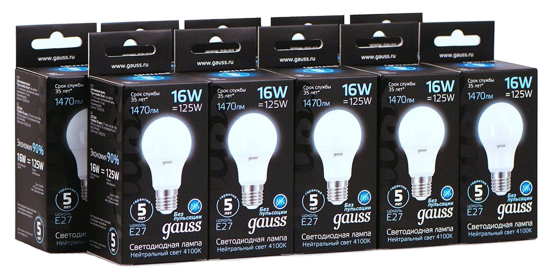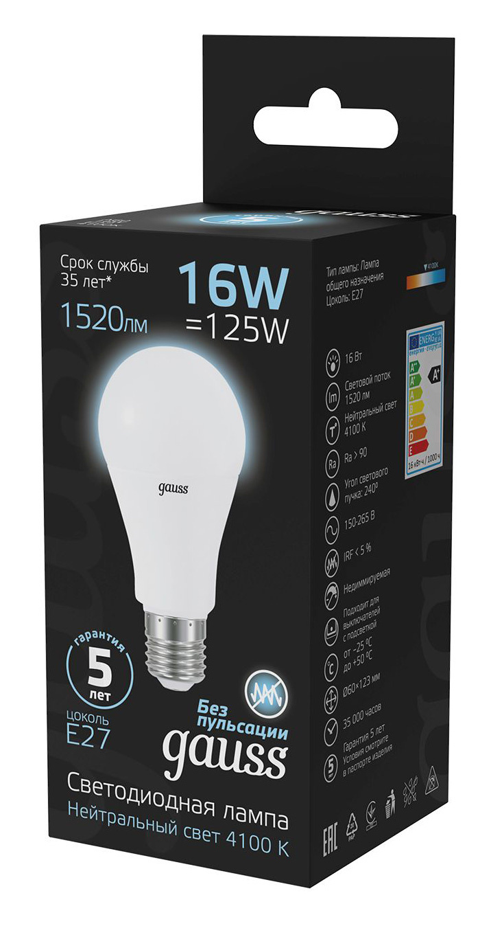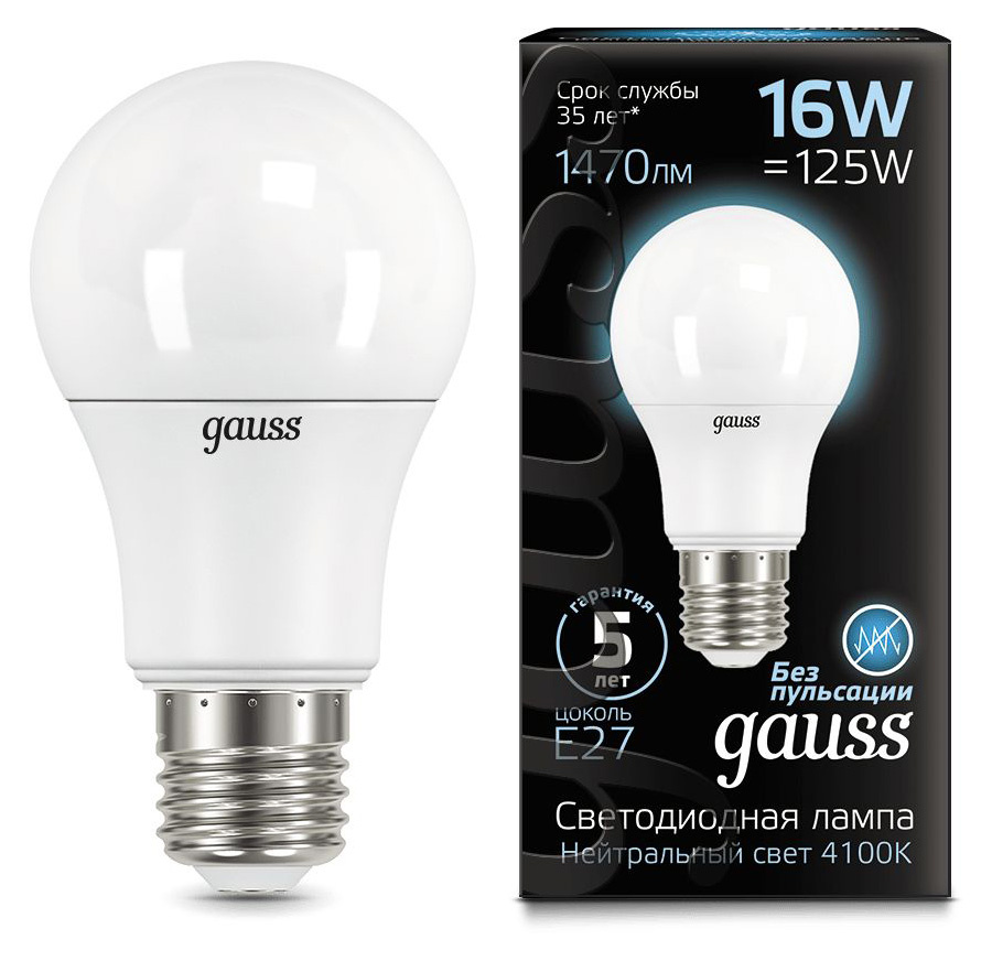16Вт цок.:E27 груша 220B св.свеч.бел.нейт. (упак....