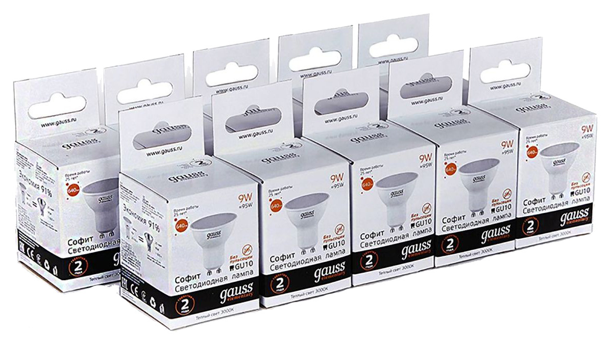 Светодиодная лампа Gauss - самый безопасный для здоровья и окружающей среды источник света. Она не пульсирует, мгновенно включается, не содержит ртути, и имеет больший срок службы, чем лампы накаливания и КЛЛ.