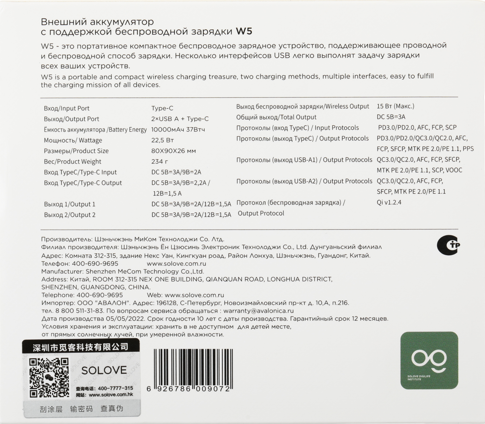 10000mAh QC3.0/PD3.0/PE2.0 22.5W 2.1A 2xUSB-A/USB...