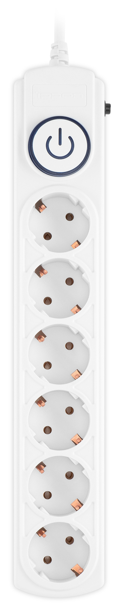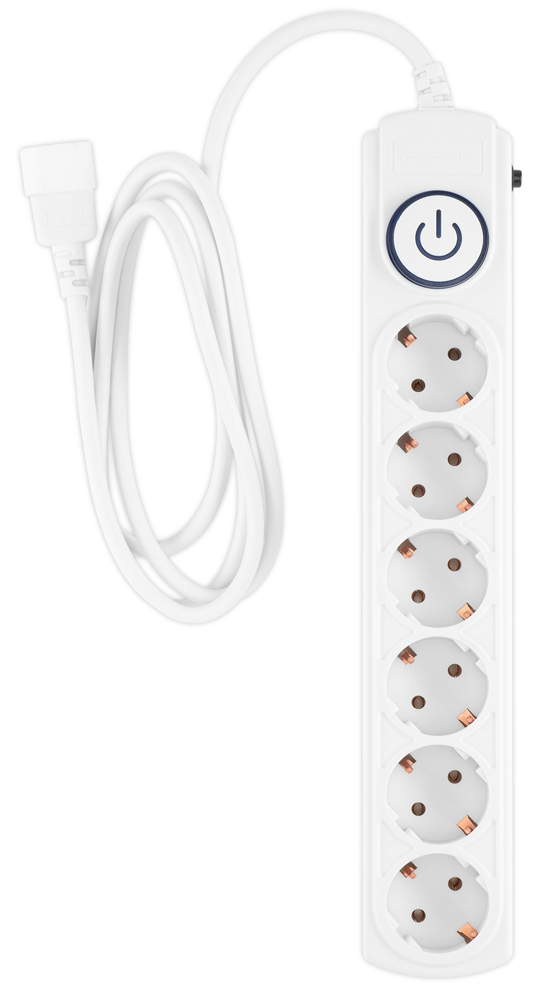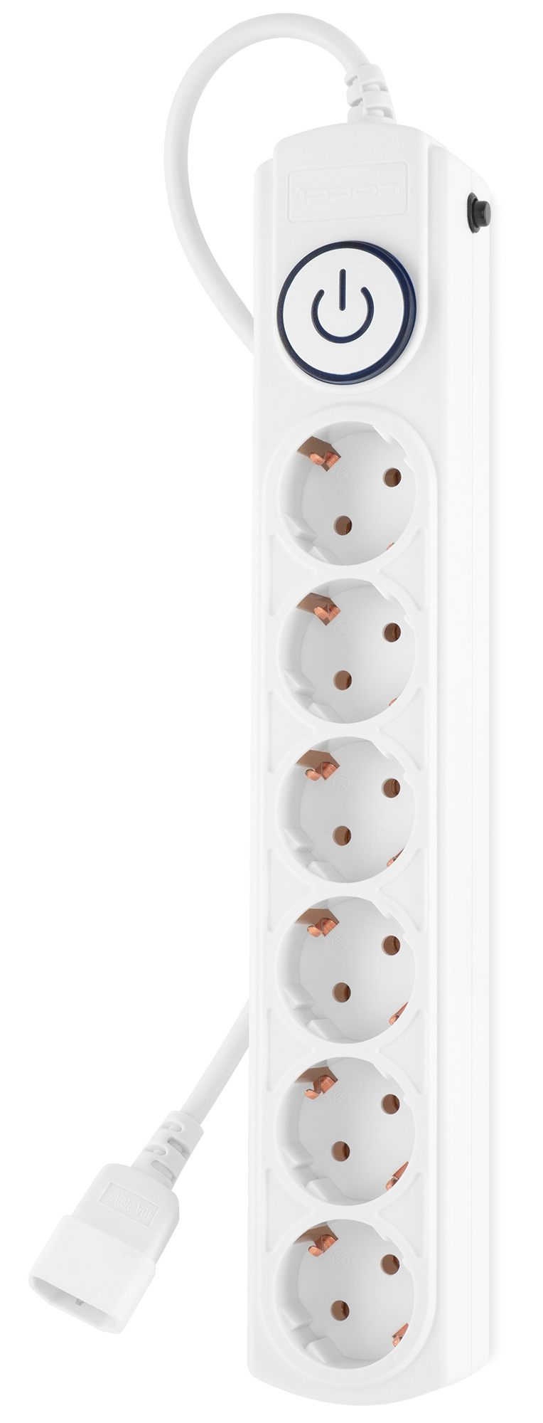 6 евророзеток с заземлением. Входная вилка IEC 320 (для подключения к ИБП). Защита от перегрузки. Защита от импульсов высокого напряжения. Защита от перетирания провода в месте входа в корпус фильтра. Ударопрочный негорючий корпус. Кнопка питания с индикатором сети.