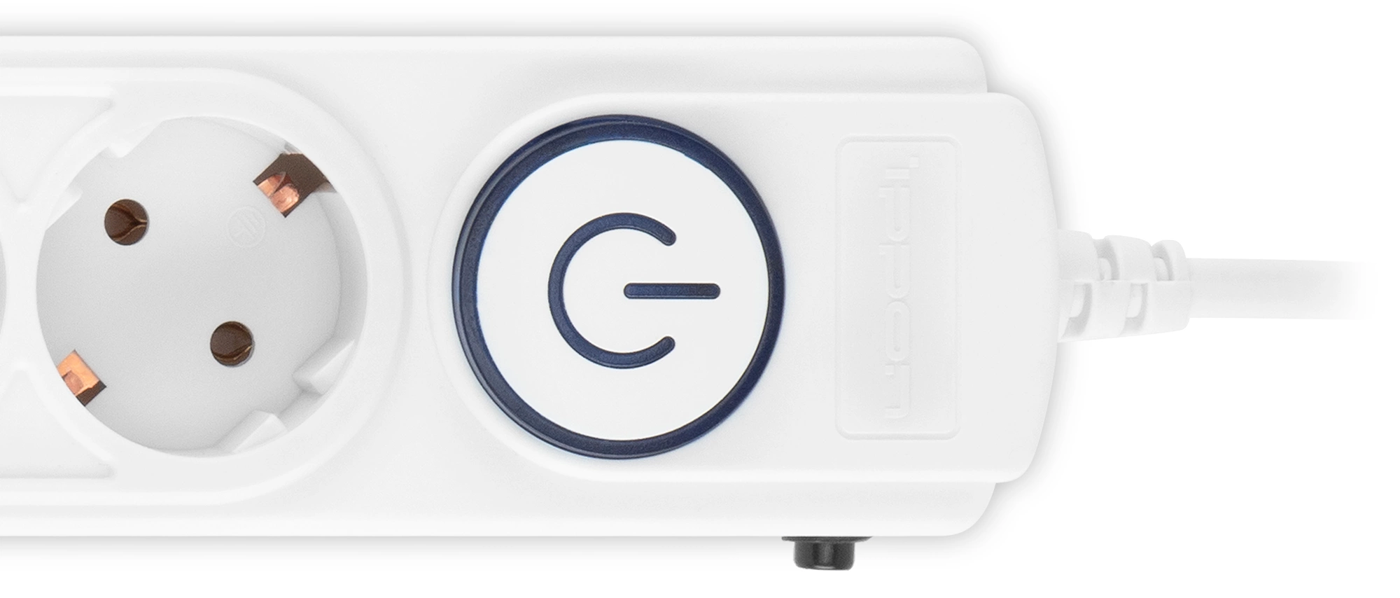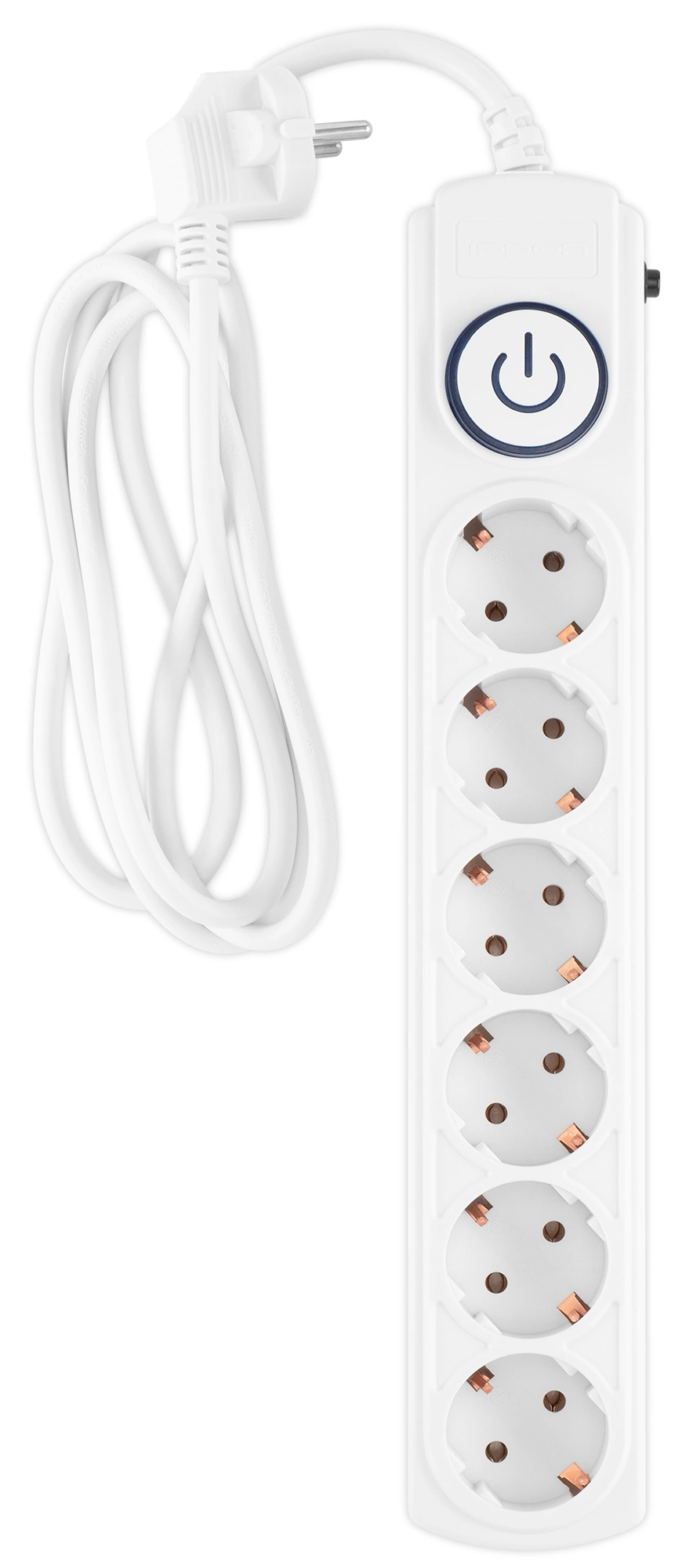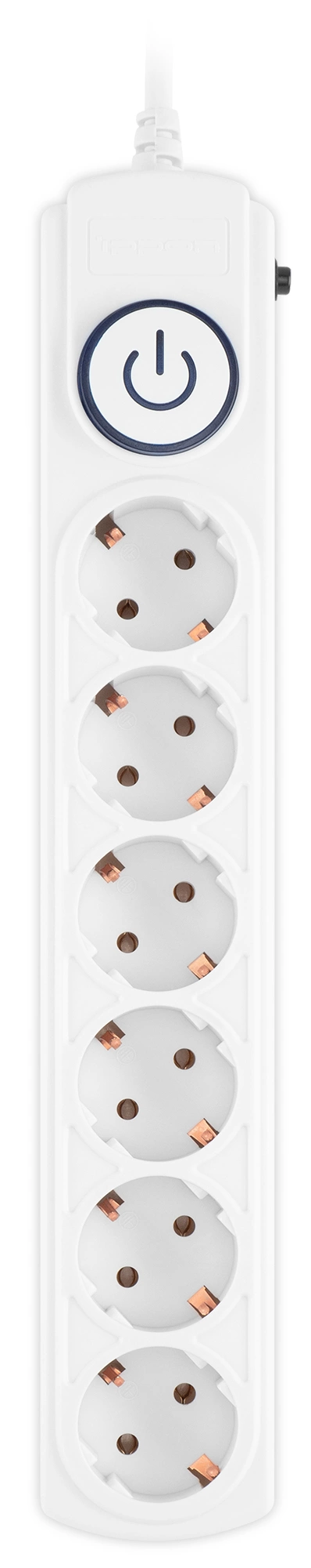 Входная вилка Schuko. Защита от перегрузки. Защита от импульсов высокого напряжения. Защита от перетирания провода в месте входа в корпус фильтра. Ударопрочный негорючий корпус. Кнопка питания с индикатором сети.