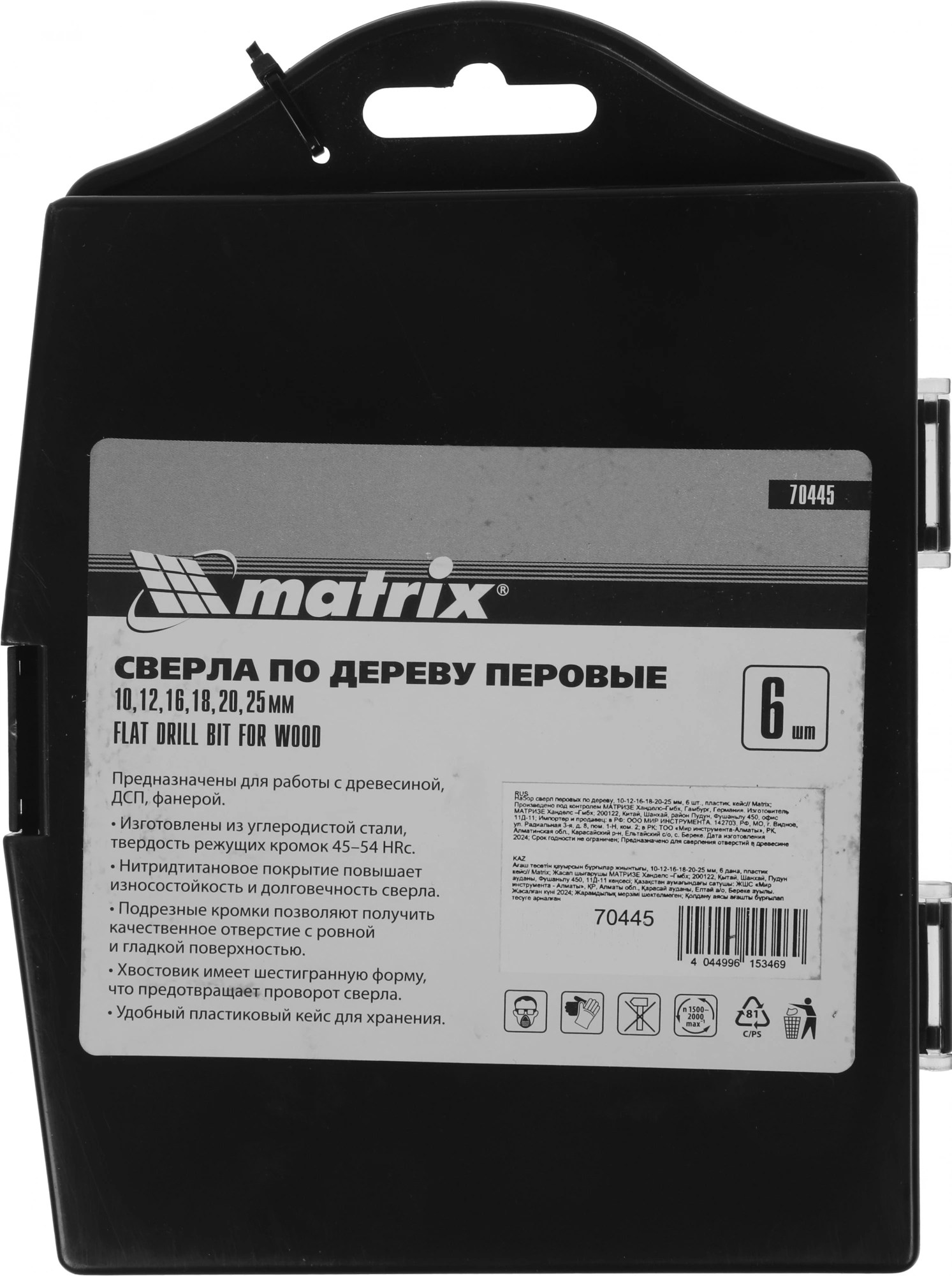 Набор сверл перовых по дереву (6 шт; 10-12-16-18-20-25 мм.) MATRIX 70445