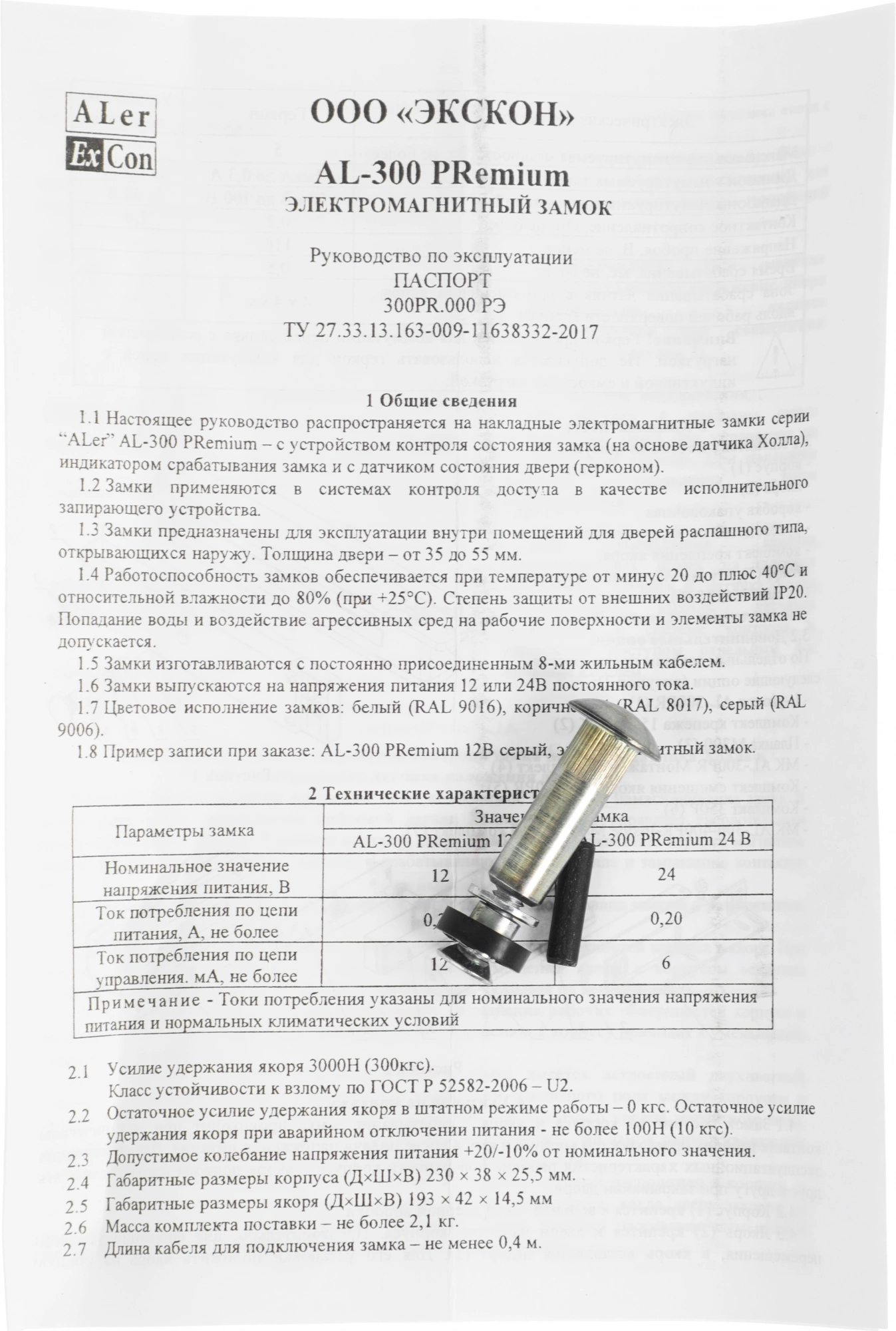 Накладной электромагнитный замок с усилием удержания не менее 300 кгс для применения в системах контроля доступа с возможностью подключения к пульту охраны.