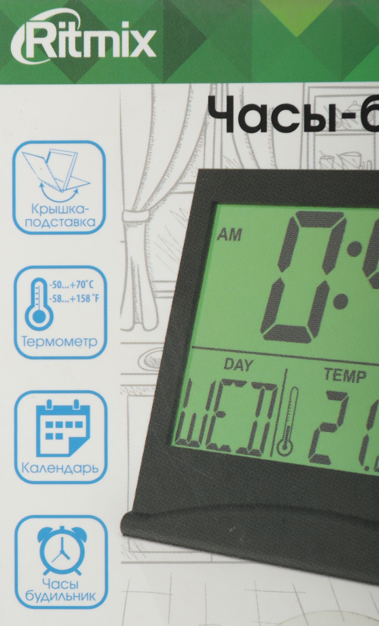 черный LCD подсв:белая часы:цифровые без радио
