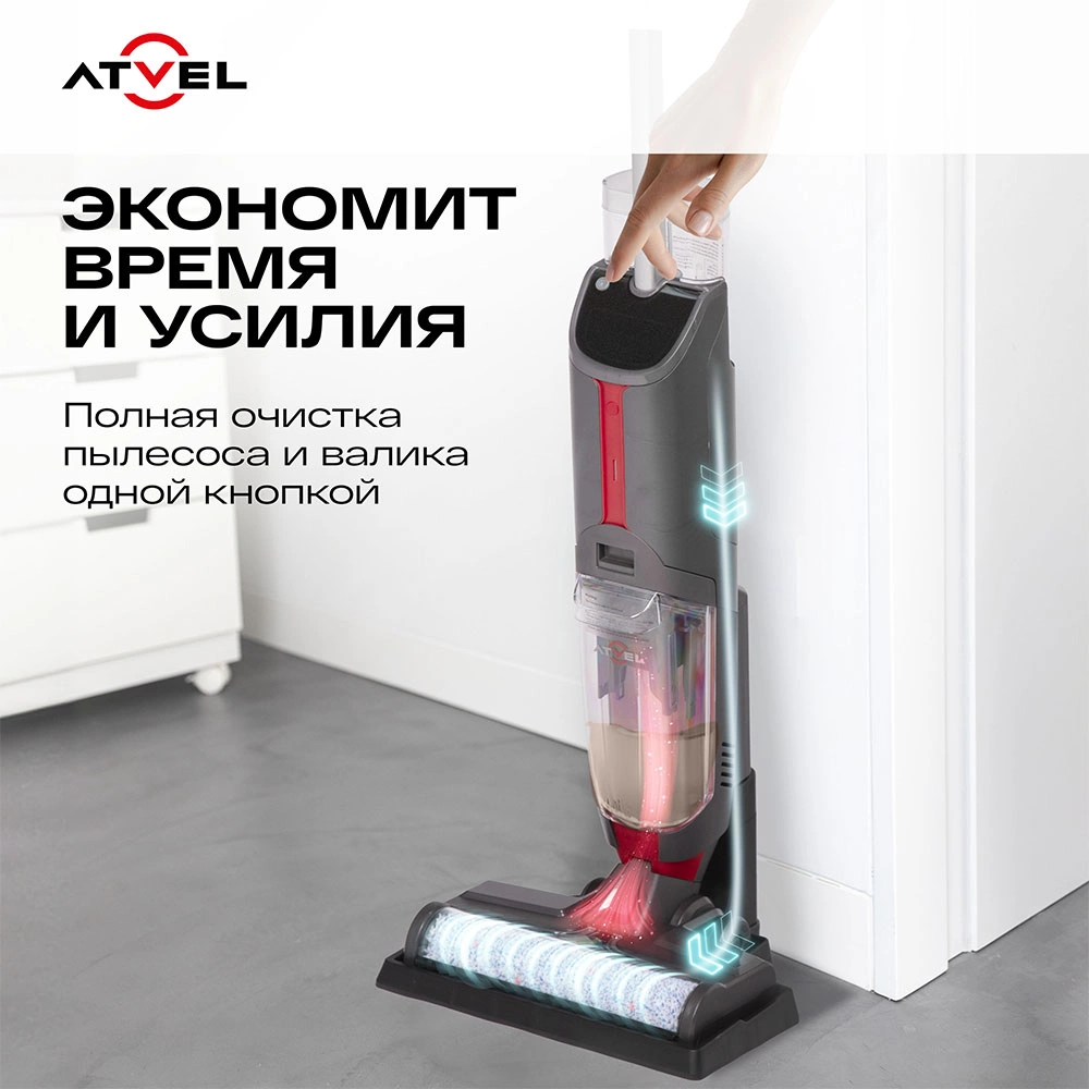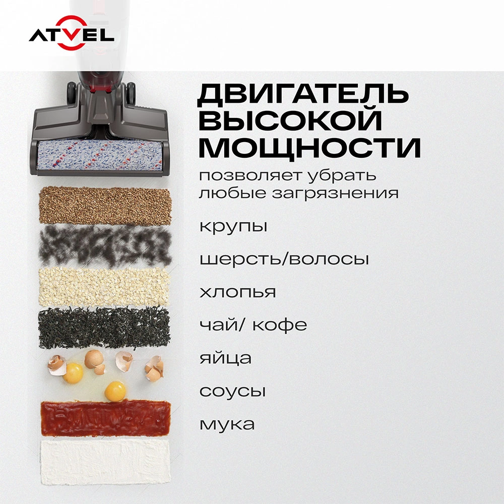 Пылесос Atvel F16 позволяет не только пылесосить без проводов, но и произвести влажную уборку помещения, убирать любые разлитые жидкости, ворс животных или мокрую грязь насухо и без следа.