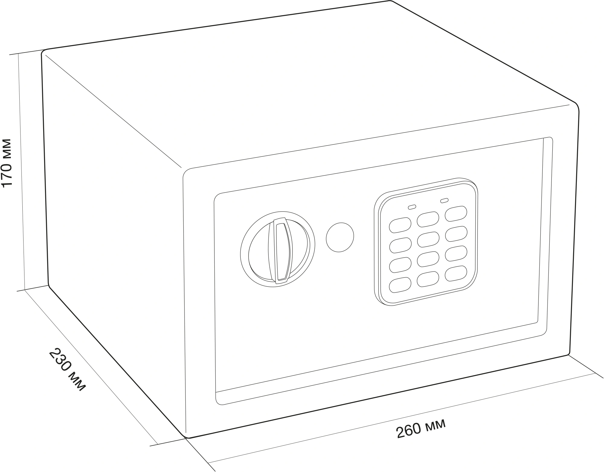 Габариты 170x260x230 мм позволяют легко разместить сейф в шкафу, тумбе или на полке. Внутреннее пространство 160x250x180 мм удобно для хранения документов, наличных, ценных вещей и мелкой электроники.