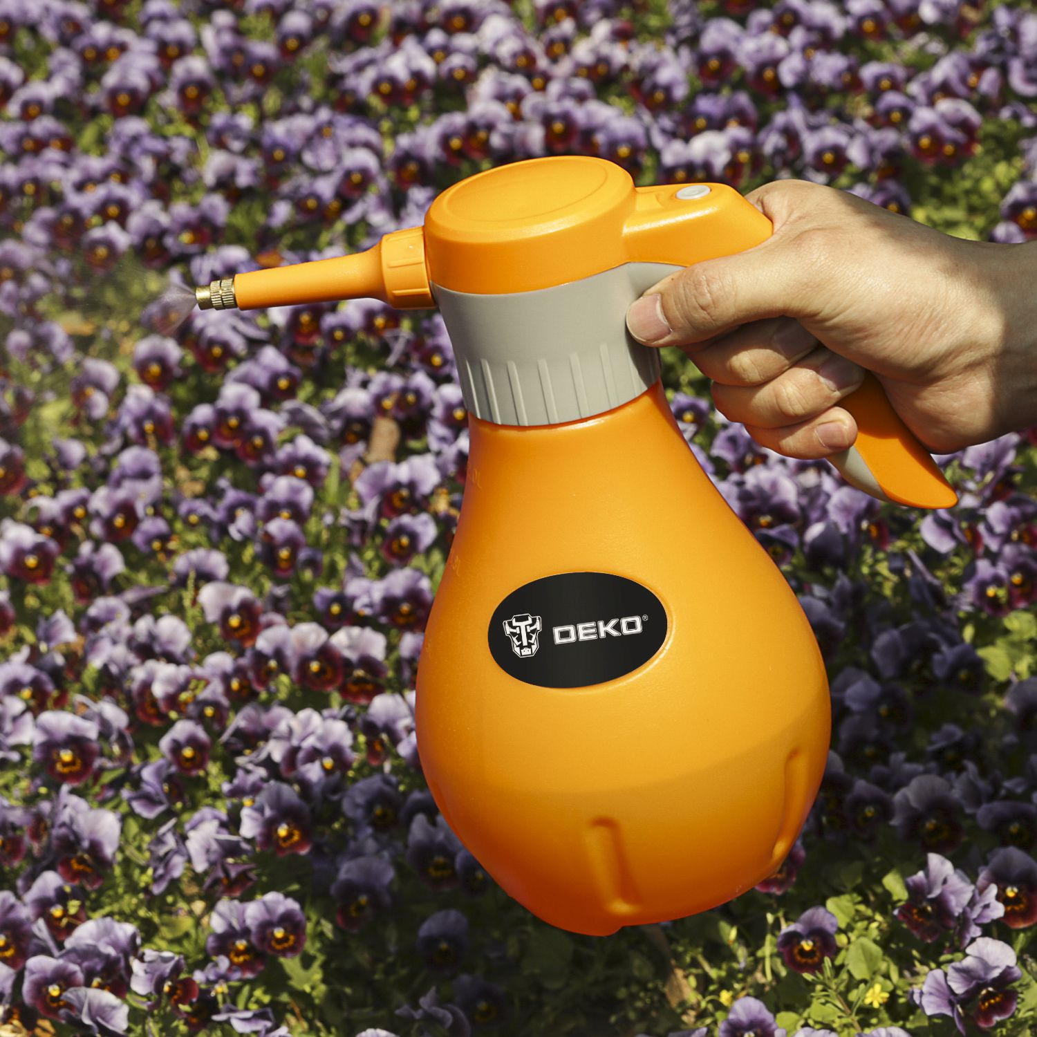 Аккумуляторный опрыскиватель DEKO DKSP14, 2 л подходит для полива цветов и растений, распыления удобрений и дезинфекции. Можно с легкостью использовать для домашней уборки и мытья окон.