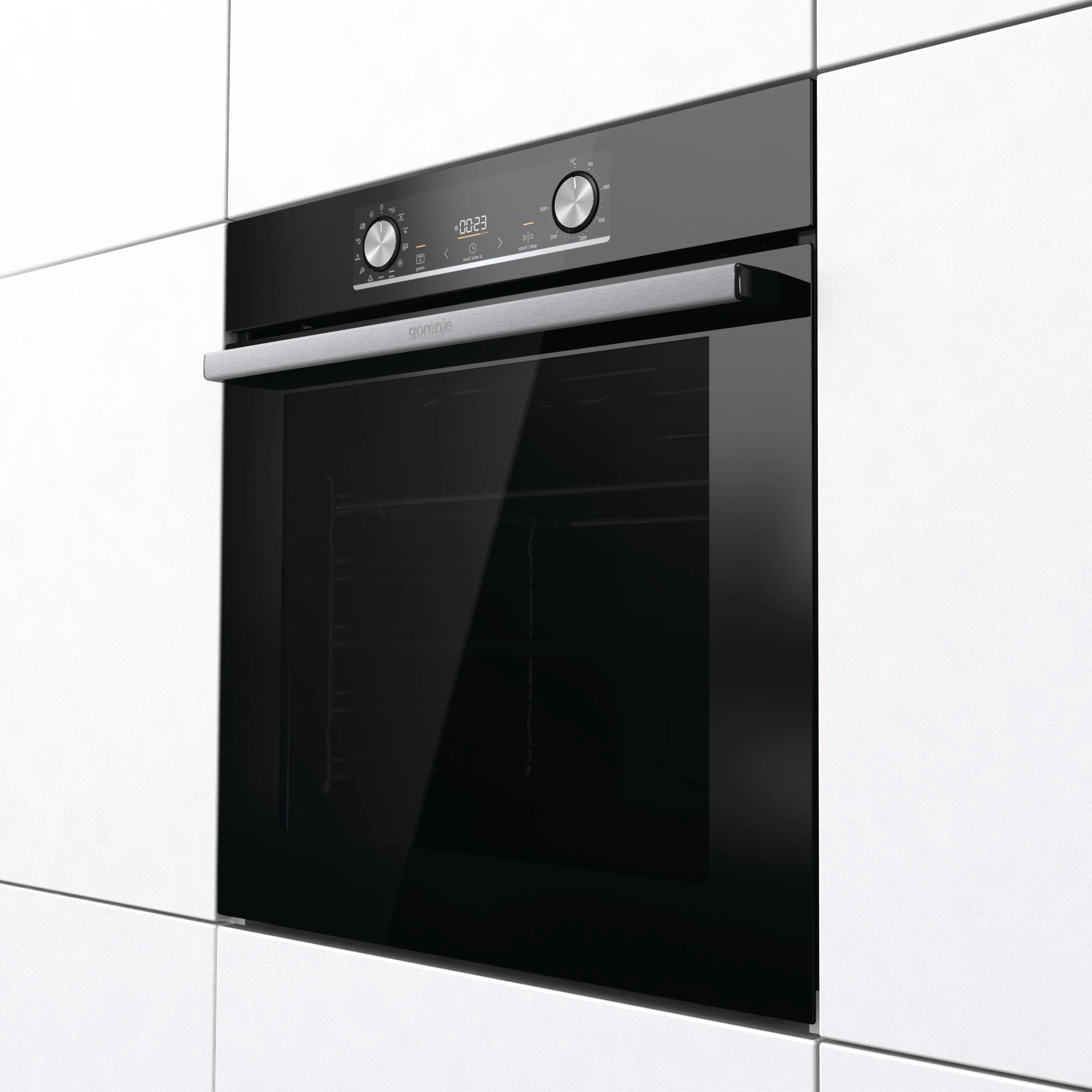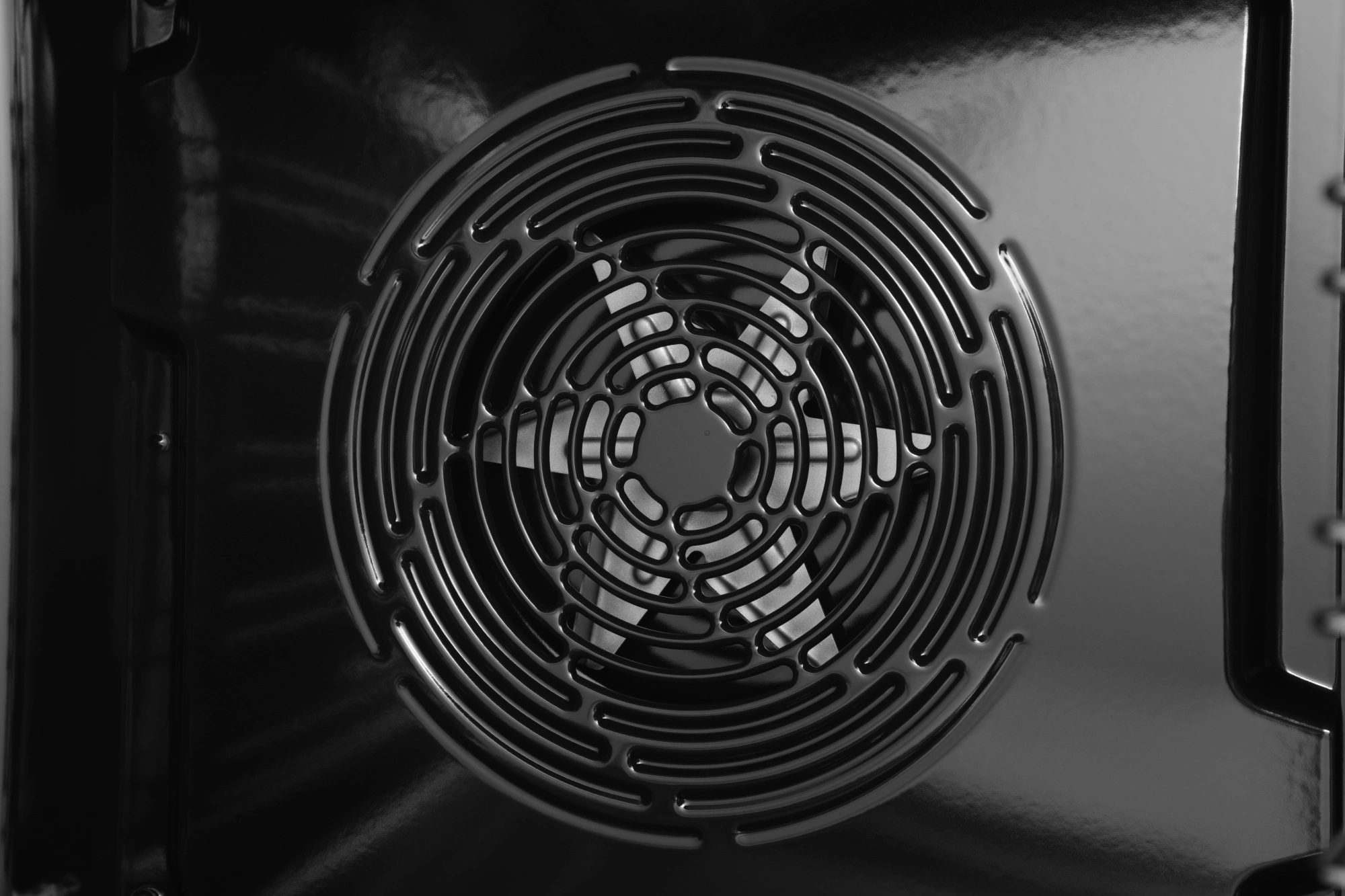 вентилятор охлаждения, полностью стеклянная внутренняя поверхность дверцы духовки, утапливаемые переключатели, электронный программатор