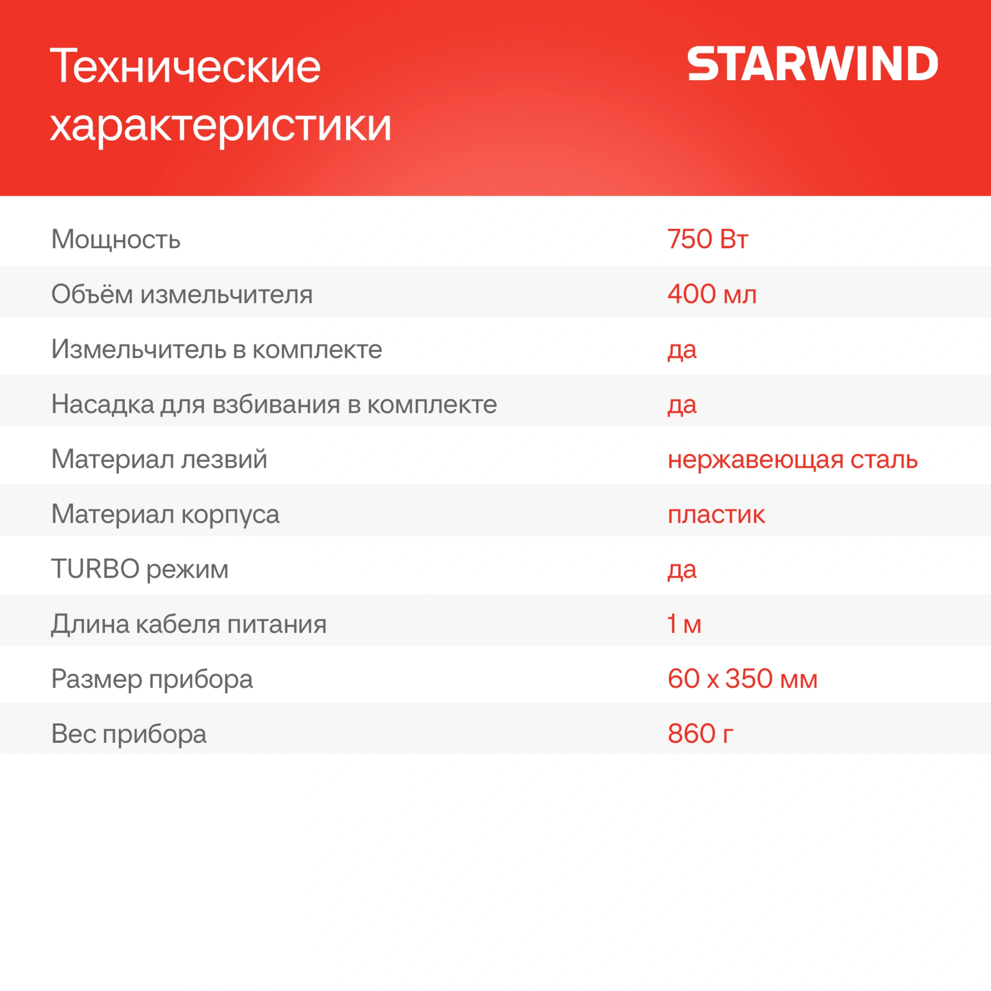 Starwind SBP1111 – это многофункциональный инструмент, с которым справится и опытный кулинар, и повар-любитель.