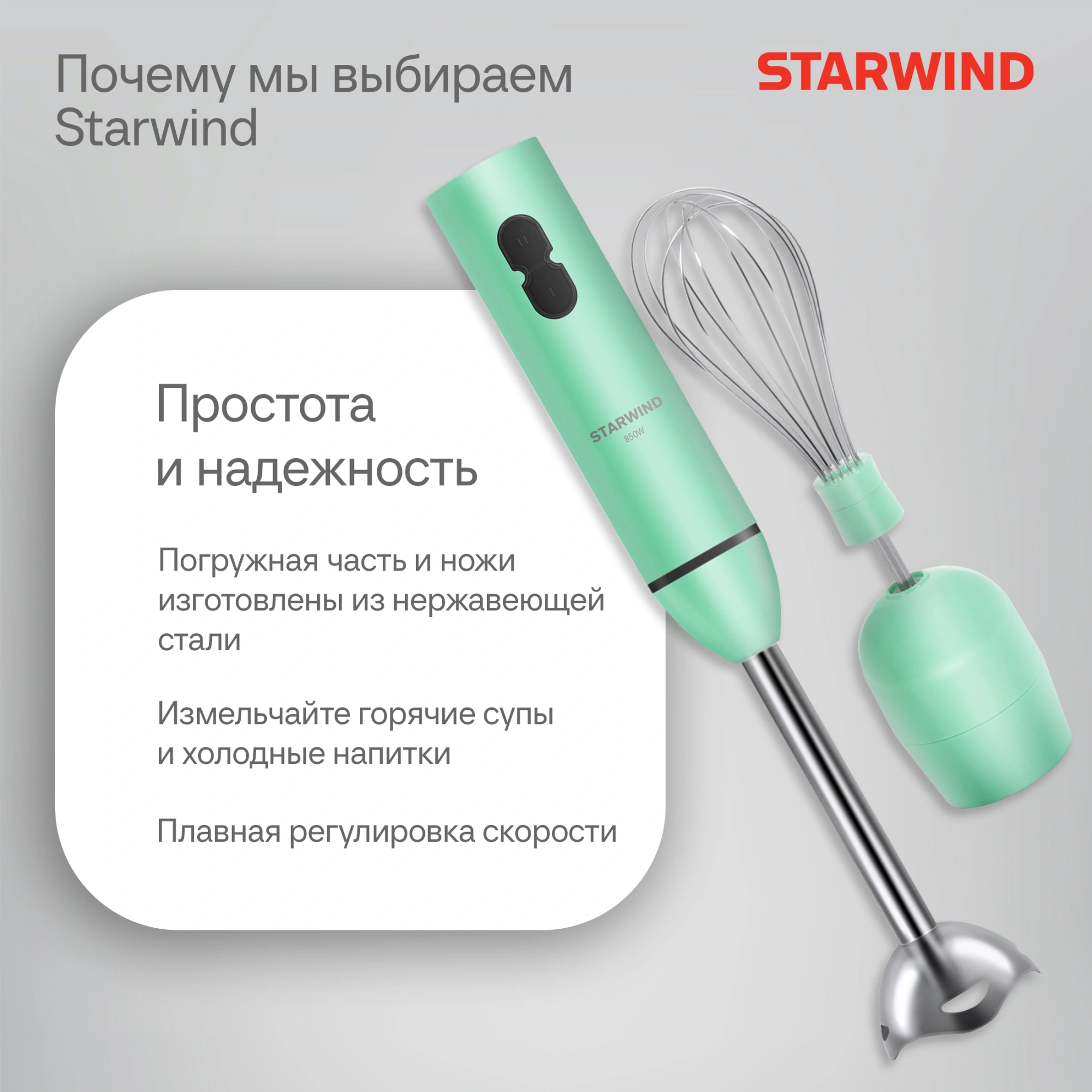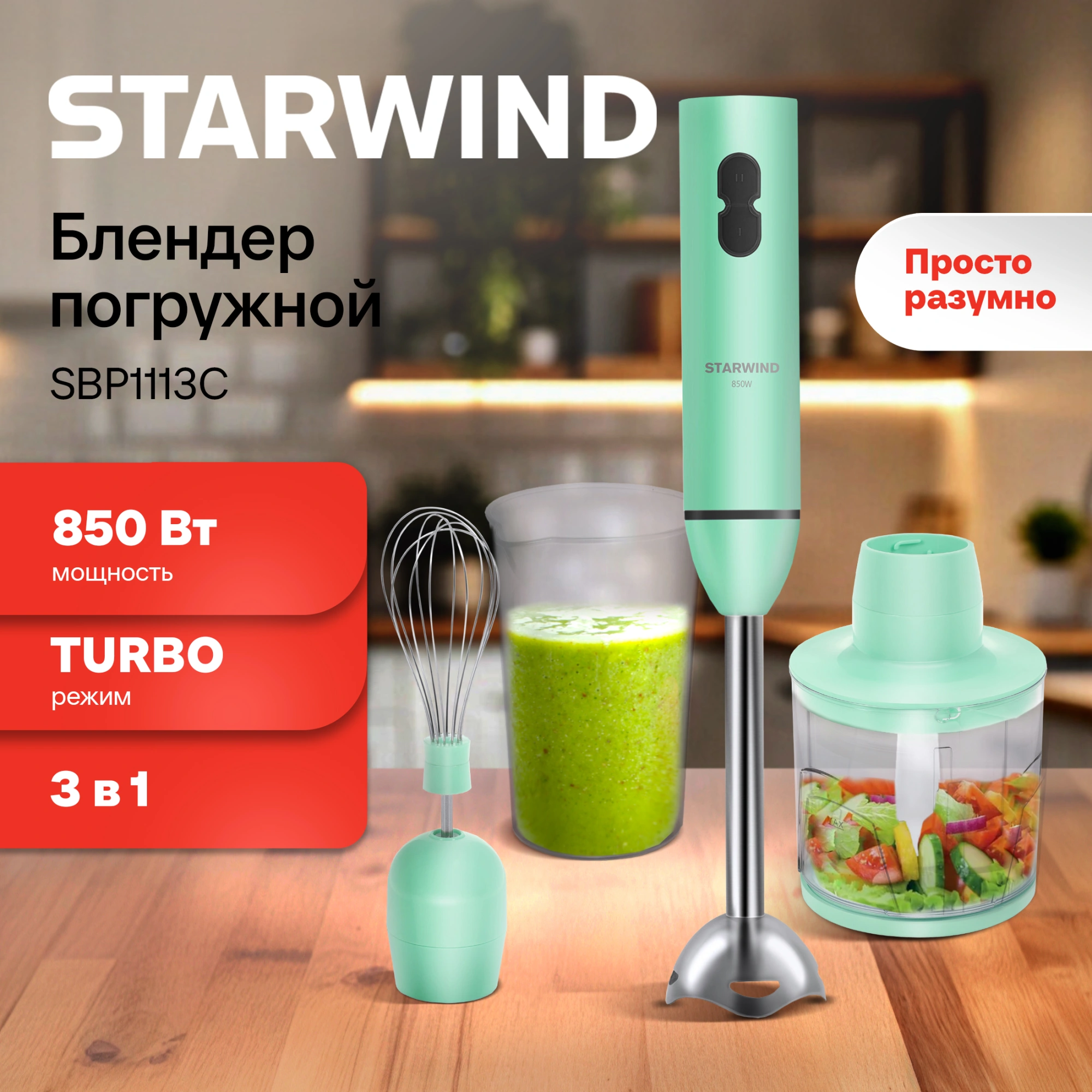 Starwind SBP1113c – это компактный помощник любой хозяйки, выполненный в стильной зелёно-белой цветовой палитре.