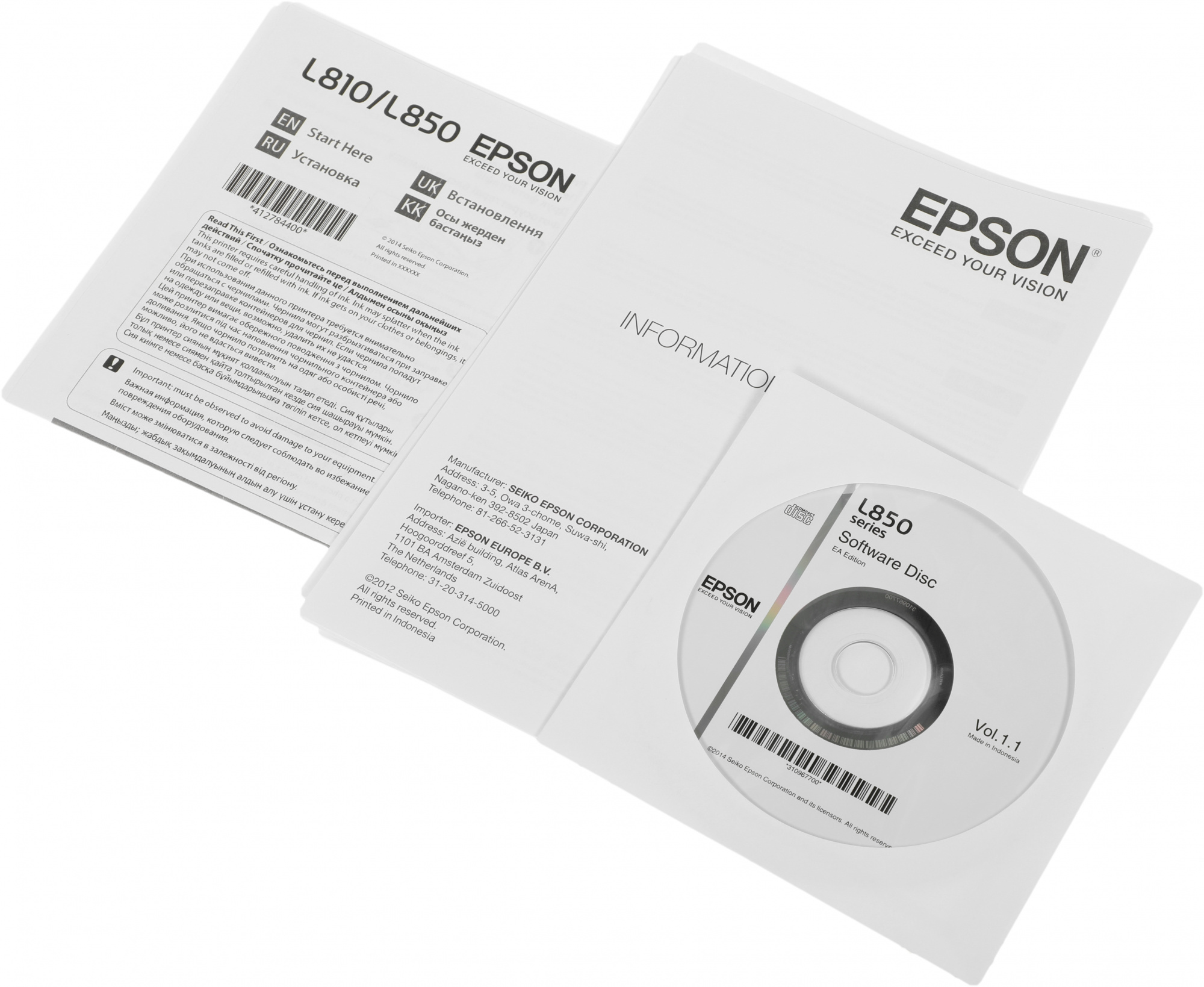 В комплекте набор контейнеров с чернилами (6 цветов)*, интерфейсный USB-кабель в комплект поставки не входит.