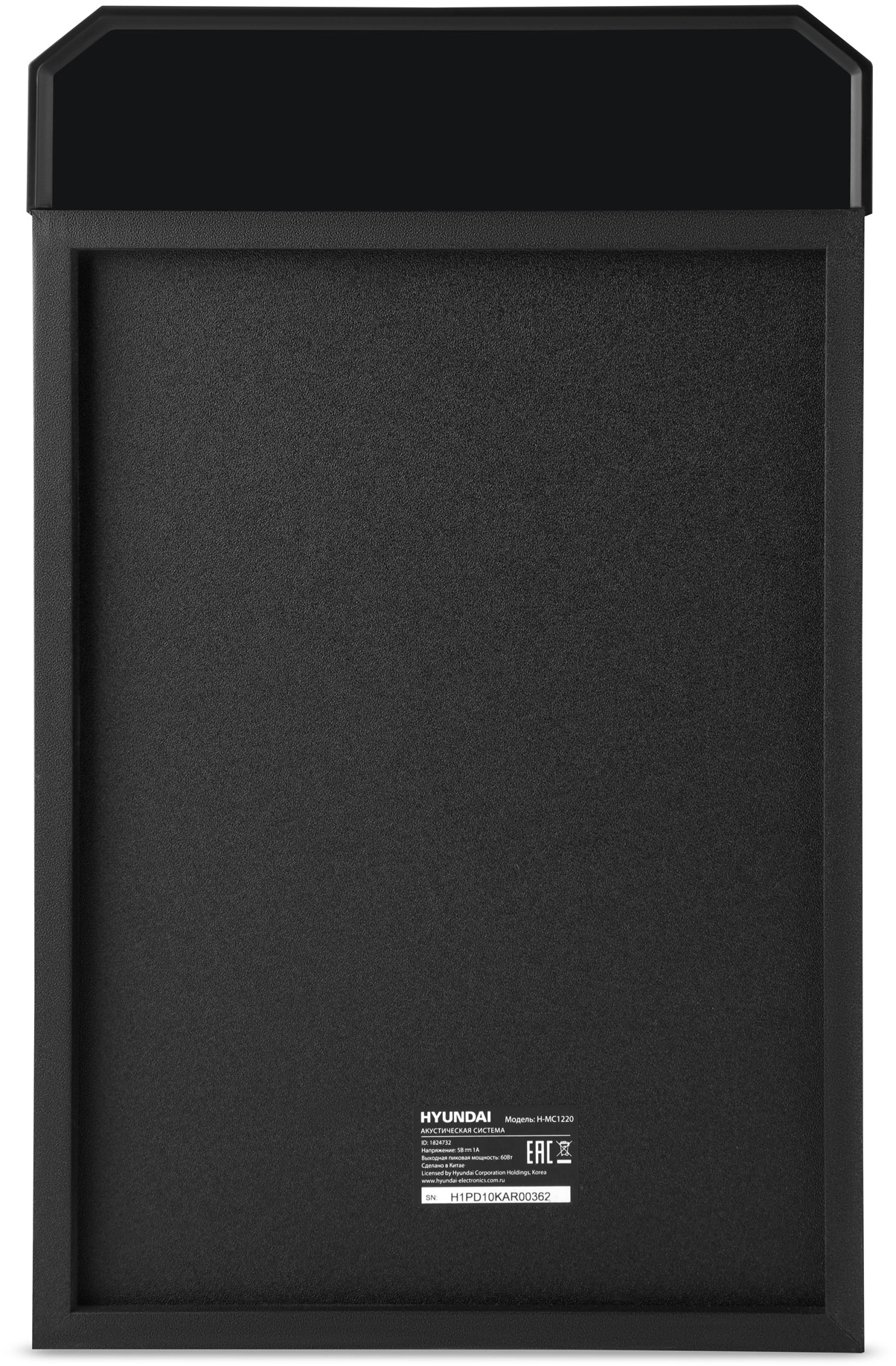 Корпус устройства выполнен из минималистичного чёрного прочного пластика, который обеспечивает надежную защиту и лёгкость акустики. Динамик Hyundai H-MC1220 имеет интегрированную яркую подсветку, выполняющую роль светомузыки.