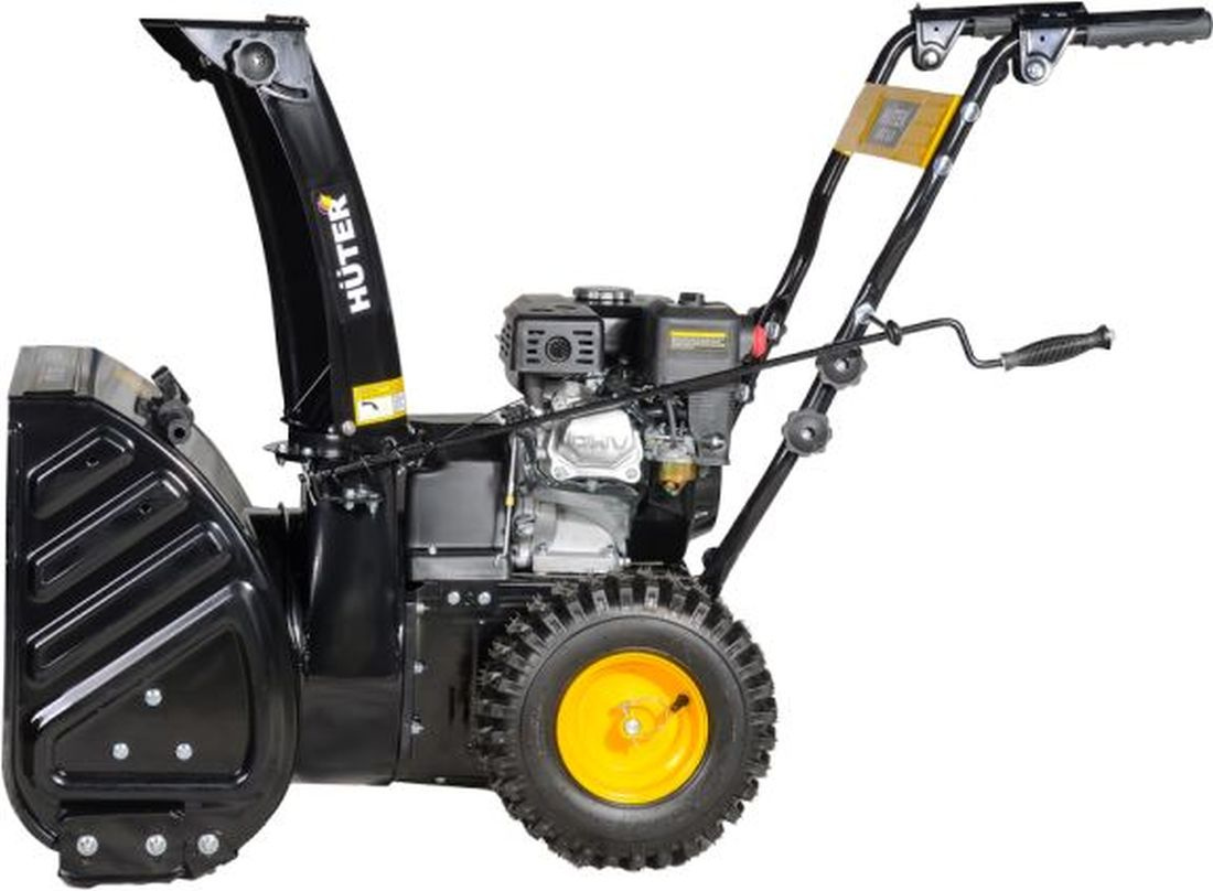 Снегоуборщик Huter SGC 6,8 имеет 5 скоростей работы вперёд и 2 назад, за один проход способен очистить 56 см осадков высотой 54 см. Хорошо измельчает плотный снег и не скользит при гололеде благодаря протекторам на шинах