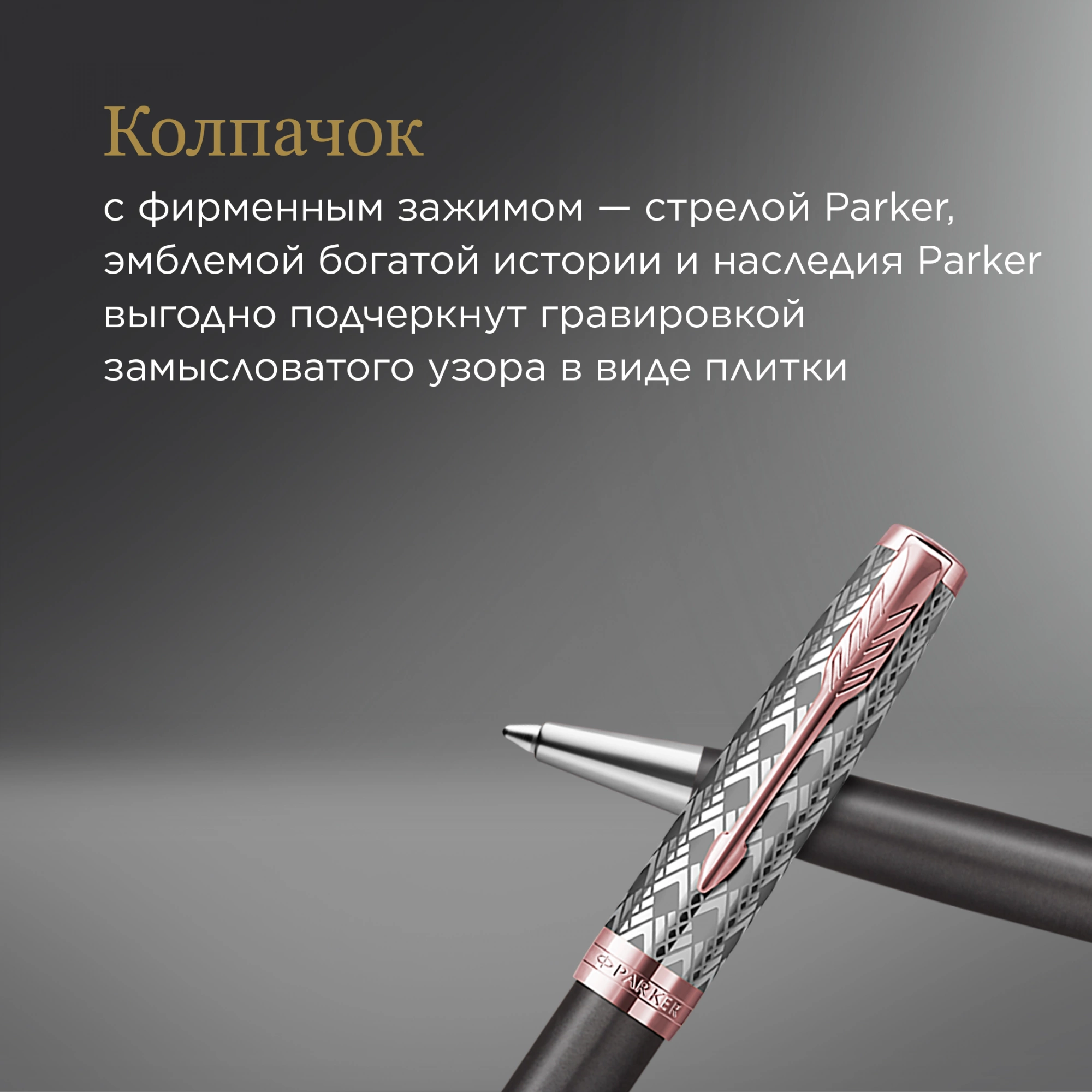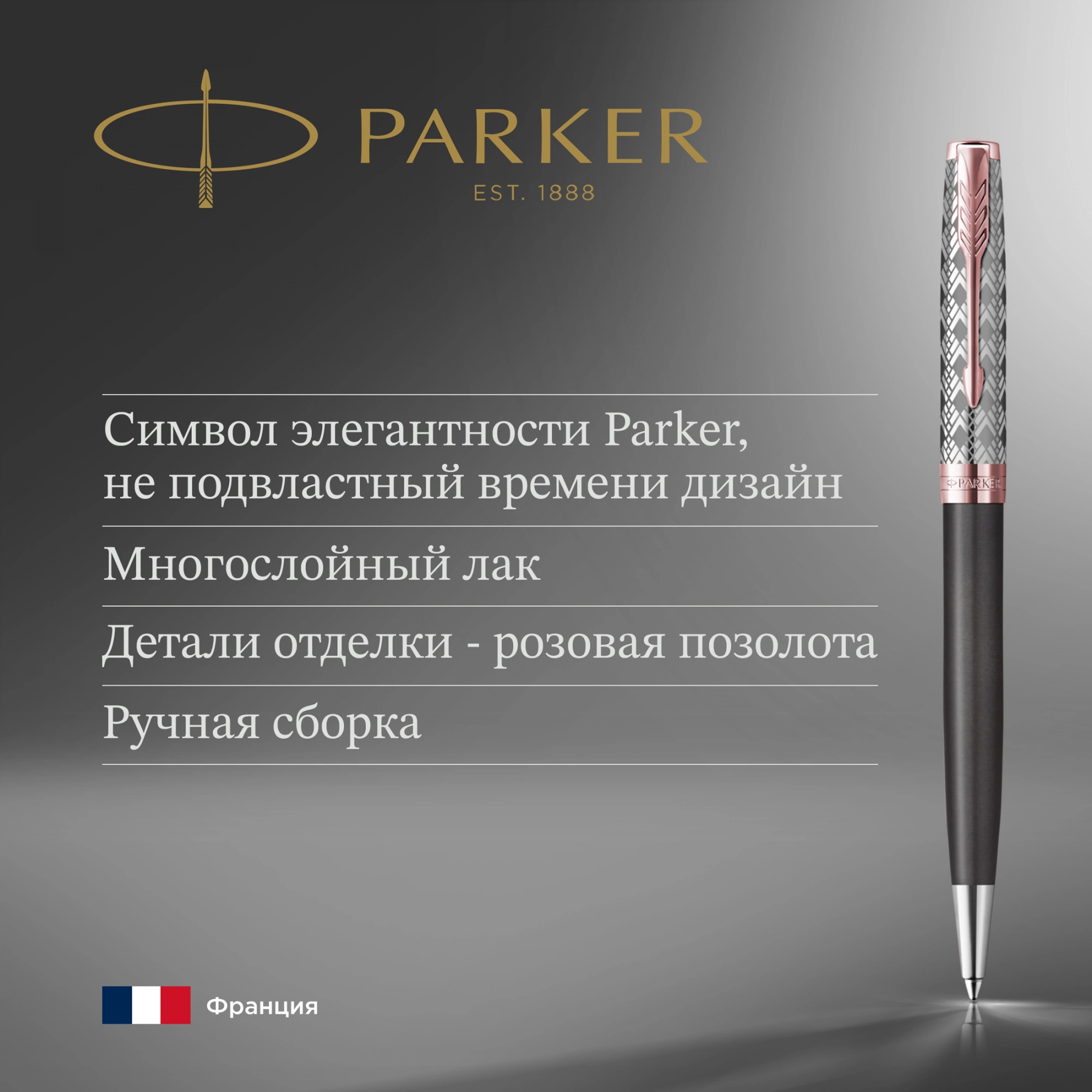 Символ мастерства PARKER, ручка, придающая изысканный стиль любому случаю письма, поставляется в подарочной упаковке премиум-класса PARKER, в комплекте со сменным стержнем Parker Quinkflow® для шариковых ручек (вставлен в ручку), со средним размером пишущего узла и черными чернилами, который обеспечивает неизменно гладкое, чистое и аккуратное письмо. Так же совместима с гелевыми стержнями Parker.