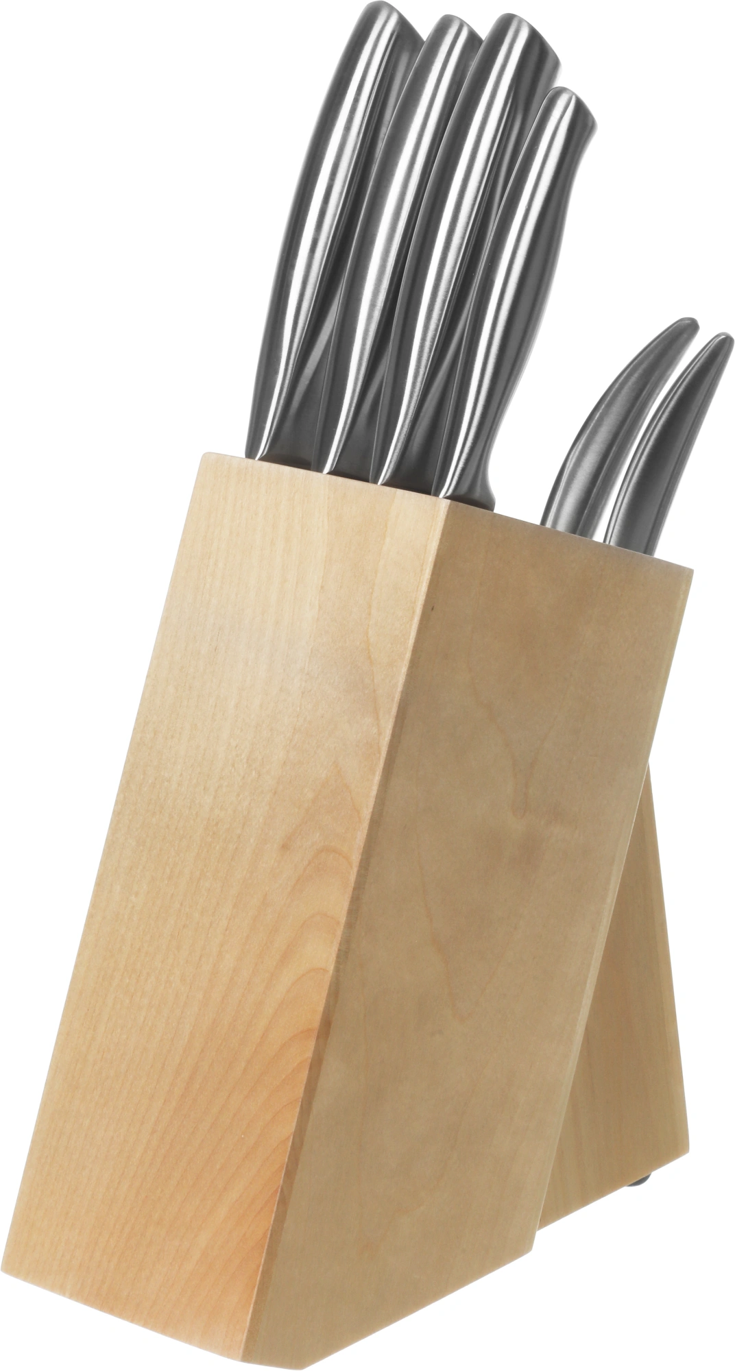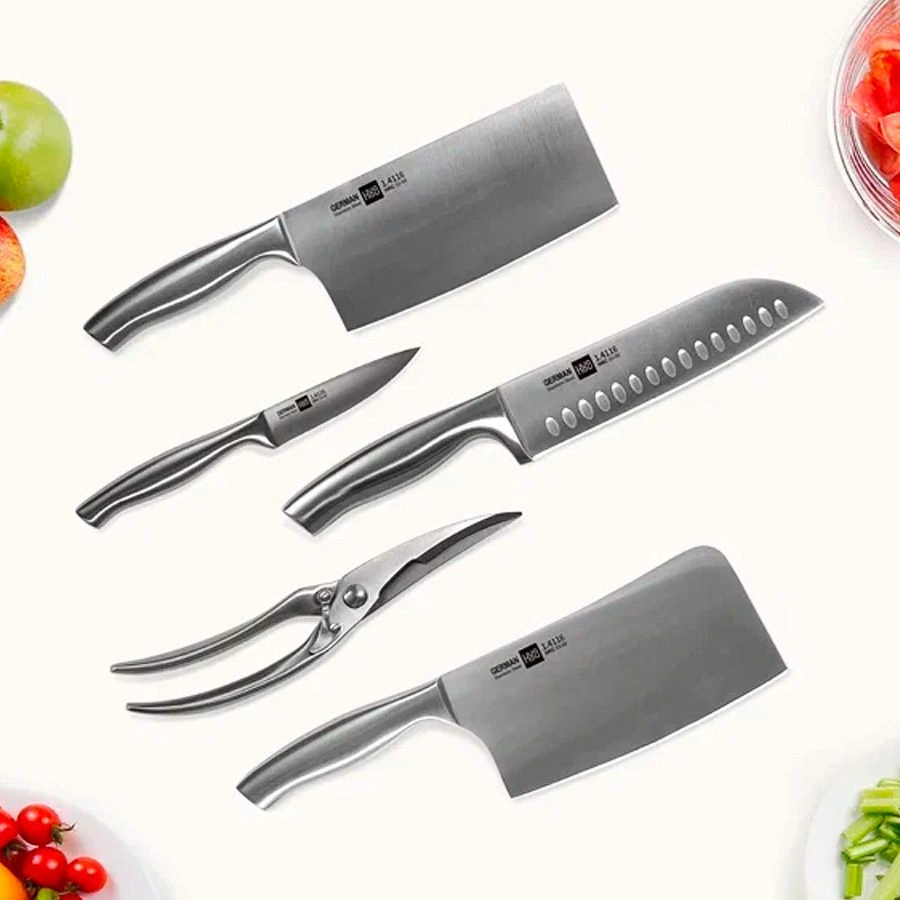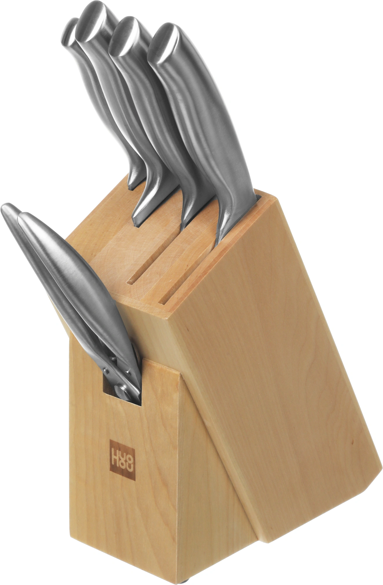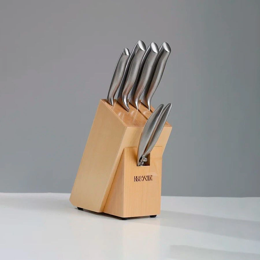 нож для рубки мяса, нож-слайсер, нож сантоку, нож для фруктов и овощей, ножницы для разделки птицы, подставка