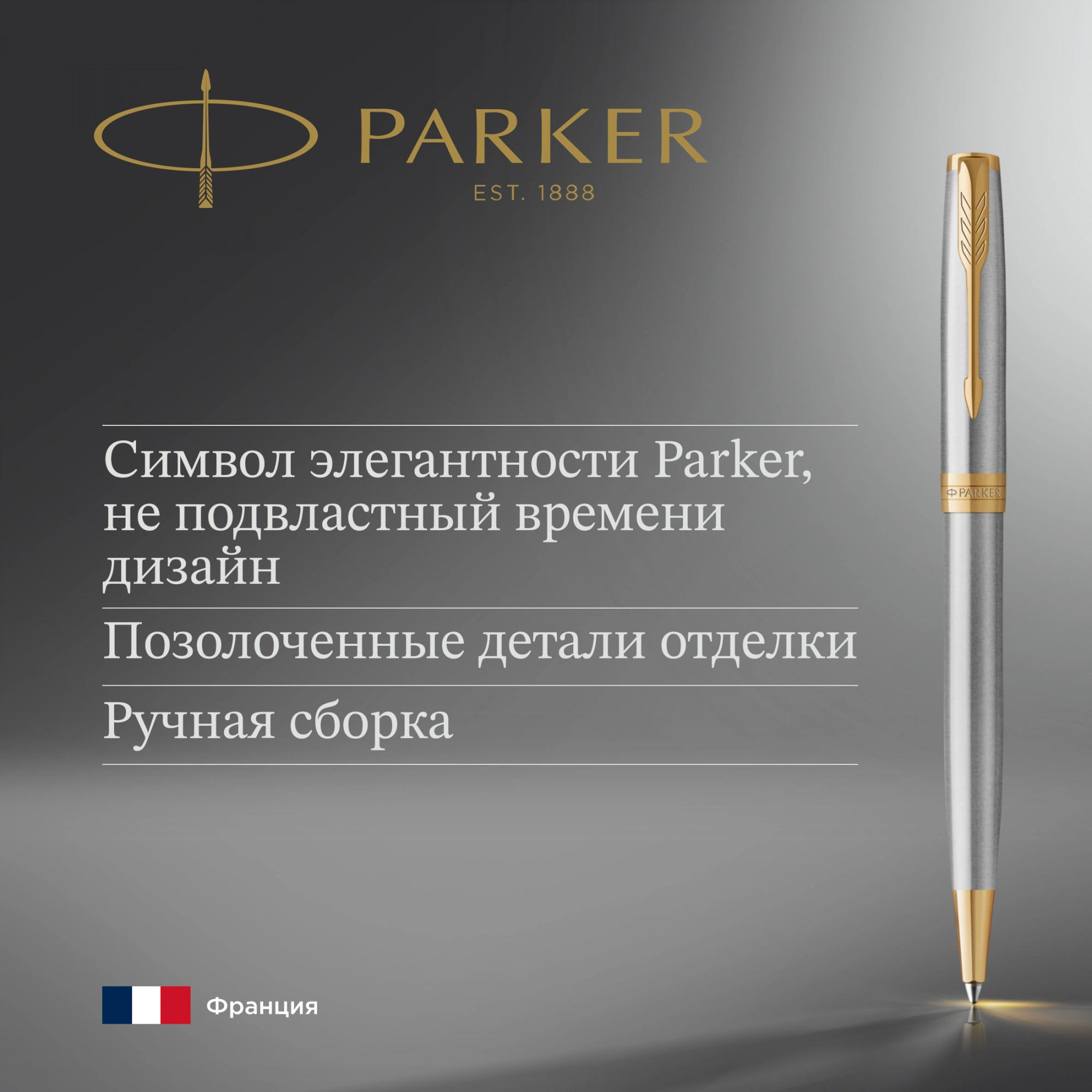 Наслаждайтесь более гладким, чистым и аккуратным письмом с шариковой ручкой PARKER Sonnet. Не подвластная времени, элегантная шариковая ручка с поворотным механизмом может похвастаться колпачком и корпусом из нержавеющей стали, а также клипом и деталями отделки с позолоченным покрытием. Она тщательно собрана вручную и проверена на безупречное качество, обеспечивая тем самым высокую точность и исключительное удобство письма. Внешний вид этой ручки отличает ряд дизайнерских находок, а совершенство исполнения даже самых мелких деталей создает ощущение легкости и изысканности во время использования в любой ситуации. Символ мастерства PARKER, ручка, придающая изысканный стиль любому случаю письма, поставляется в подарочной упаковке премиум-класса PARKER, в комплекте со сменным стержнем Parker Quinkflow® для шариковых ручек (вставлен в ручку), со средним размером пишущего узла и черными чернилами, который обеспечивает неизменно гладкое, чистое и аккуратное письмо. Так же совместима с гелевыми стержнями Parker.