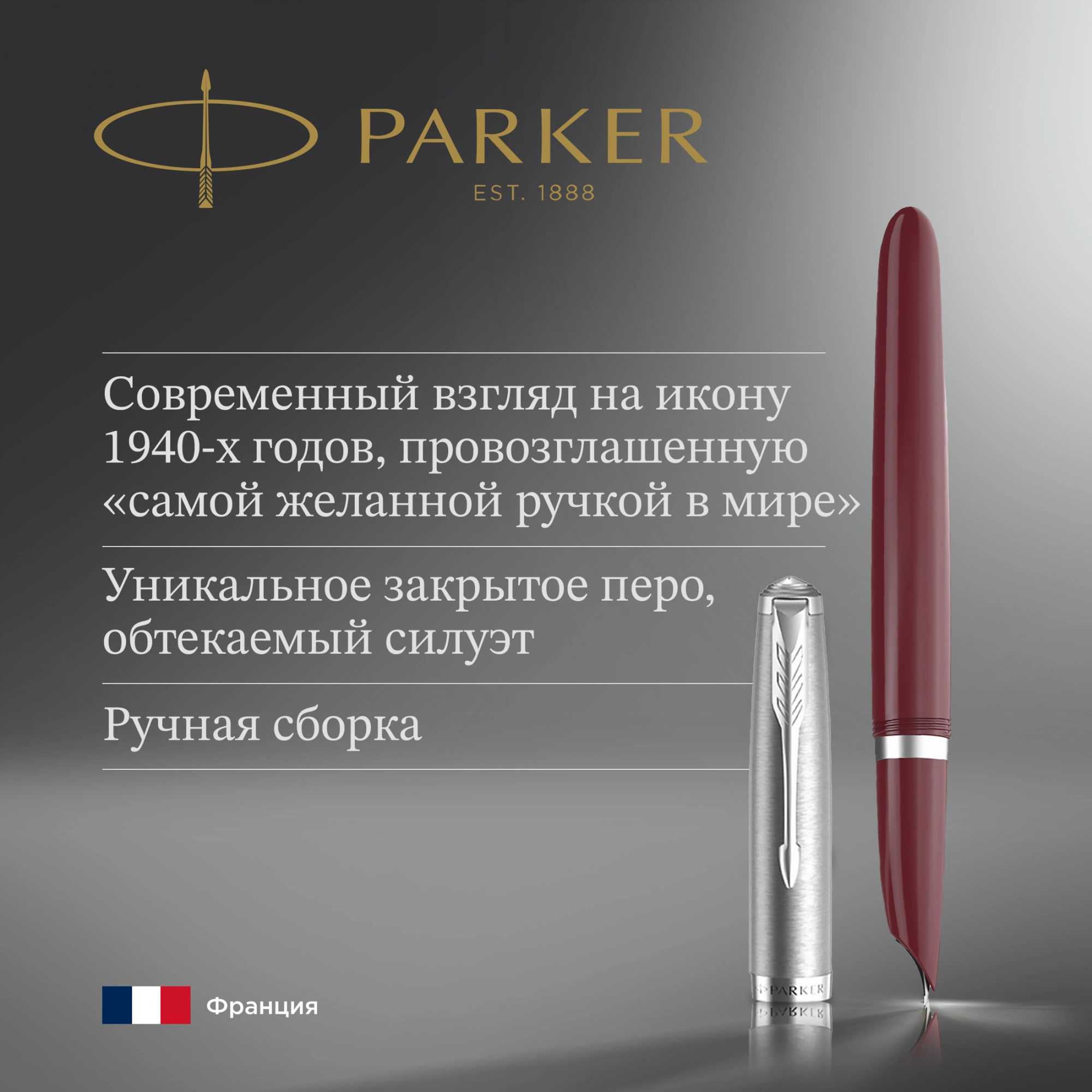 Переосмысление классики. Уникальная коллекция Parker 51 вдохновлена ручкой, когда-то провозглашенной «самой разыскиваемой в мире», и сохранила свой обтекаемый силуэт, характерное закрытое перо и ряд потрясающих ярких цветов. Влияние Кеннета Паркера постоянно присутствовало в концепции, дизайне и маркетинге Parker 51. Авиация была обычным явлением в рекламе Parker из-за страсти Кеннета к этой отрасли.