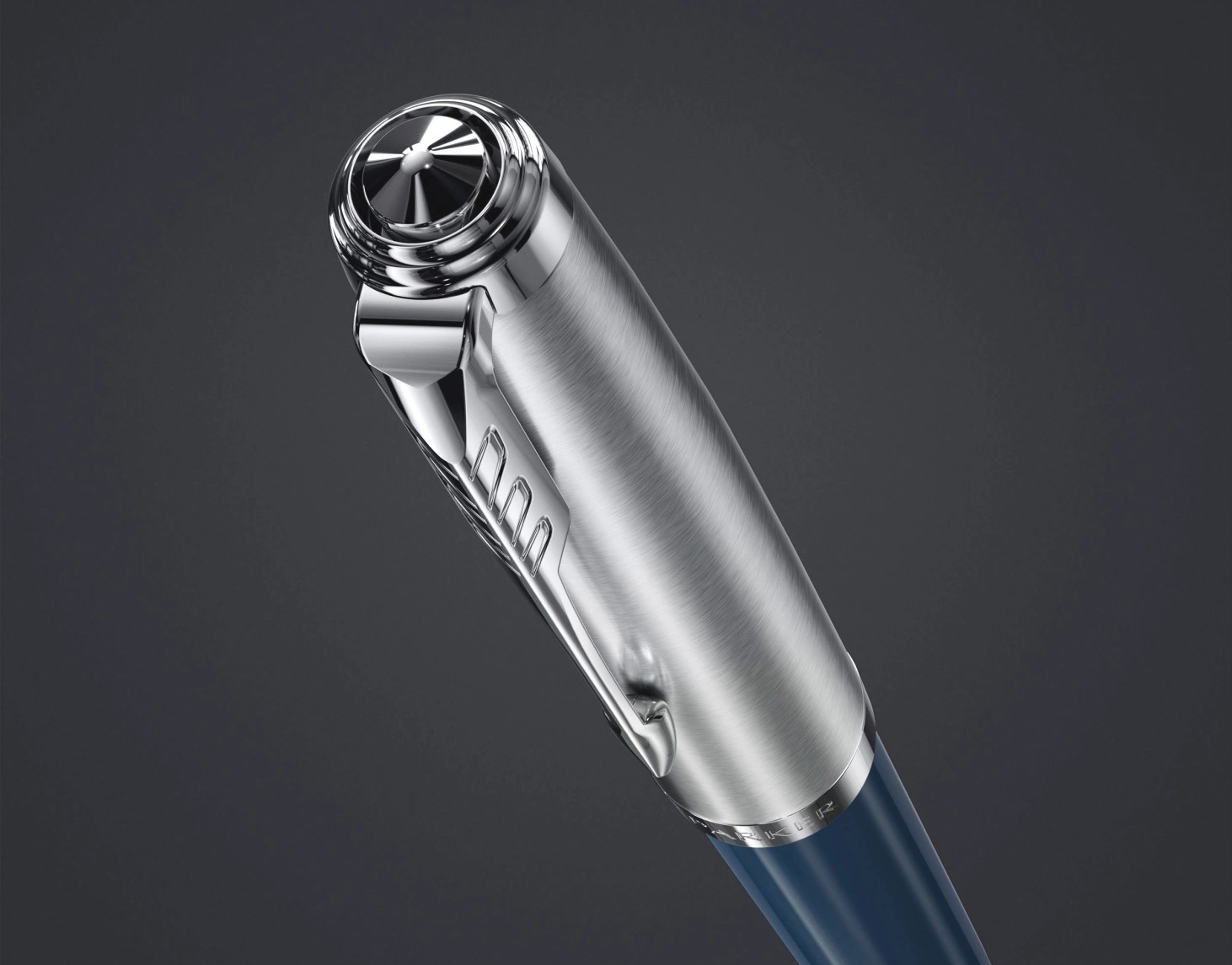 Колпачок с палладиевой или позолоченной отделкой имитацией драгоценного камня на торце и фирменным клипом со стрелой Parker. Перья в коллекции выполнены из нержавеющей стали или из 18-каратного цельного золота, культовое закрытое перо как бы является продолжением гладких, плавных изгибов корпуса. Благодаря уникальному закрытому перу, вы получаете надежный и индивидуальный подход к письму.