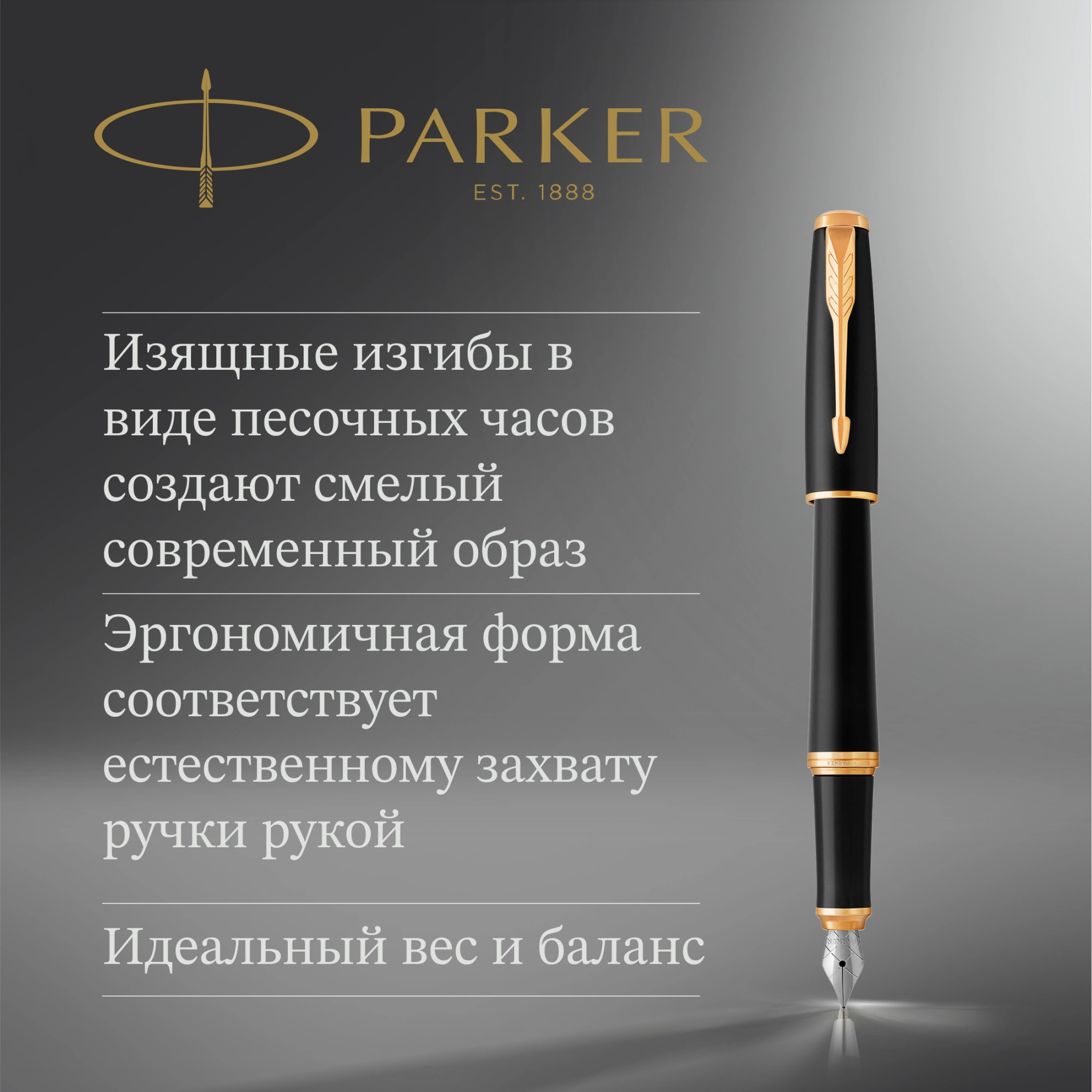 Шариковая ручка оснащена поворотным механизмом и стержнем Quinkflow с синими чернилами для гладкого и надежного письма; также можно использовать гелевые стержни Parker Quink.