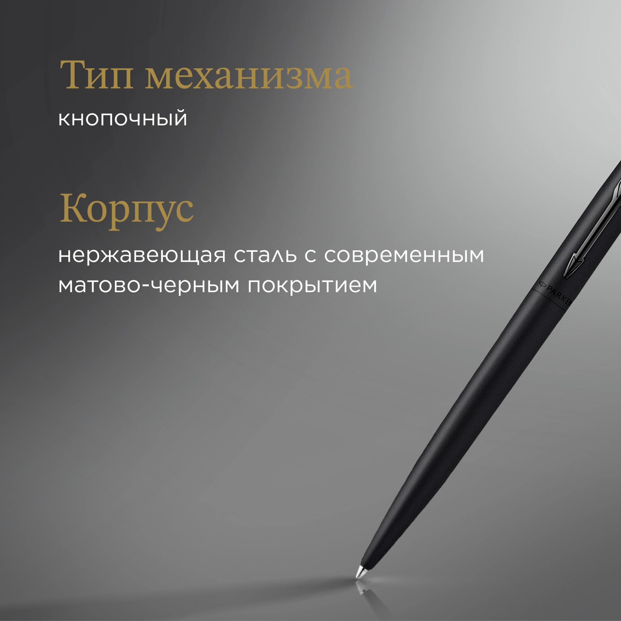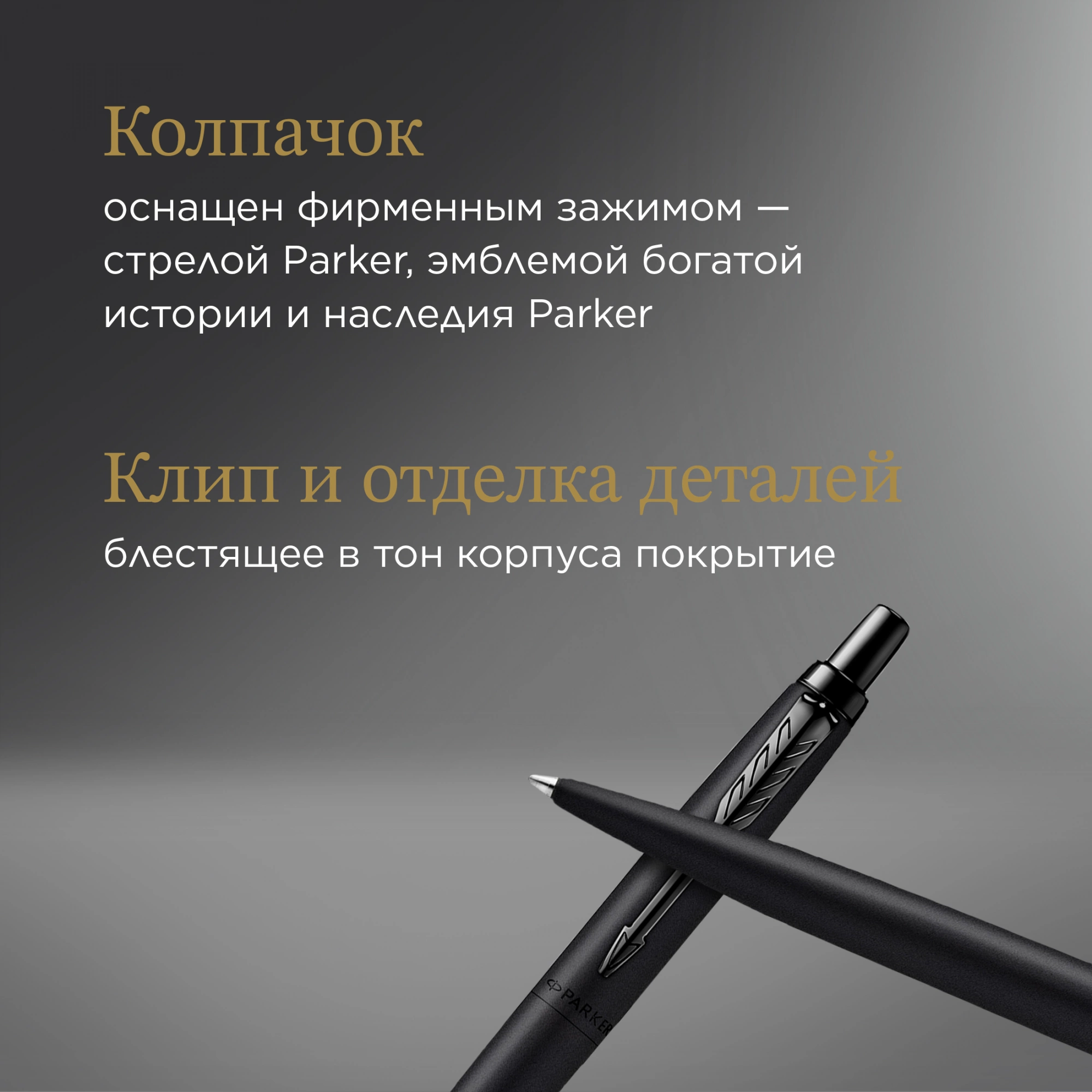 Parker Jotter XL Monochrome Matte Black имеет поразительно современные матовые черные колпачок и корпус в сочетании с соответствующим по цвету блестящим фирменным клипом в виде стрелы. Обтекаемый и легкий корпус с нажимной кнопкой, которая выдвигает и убирает стержень одним щелчком.