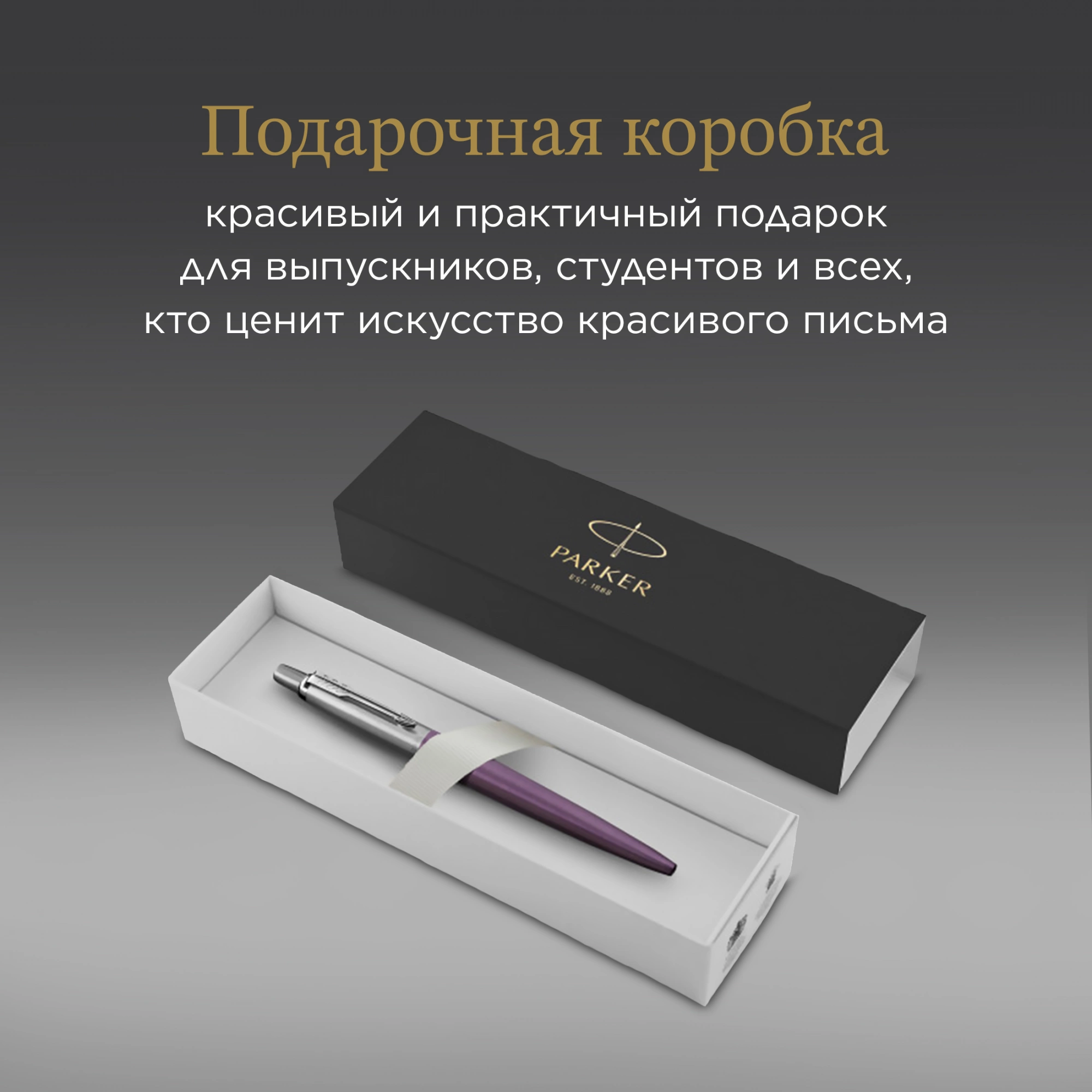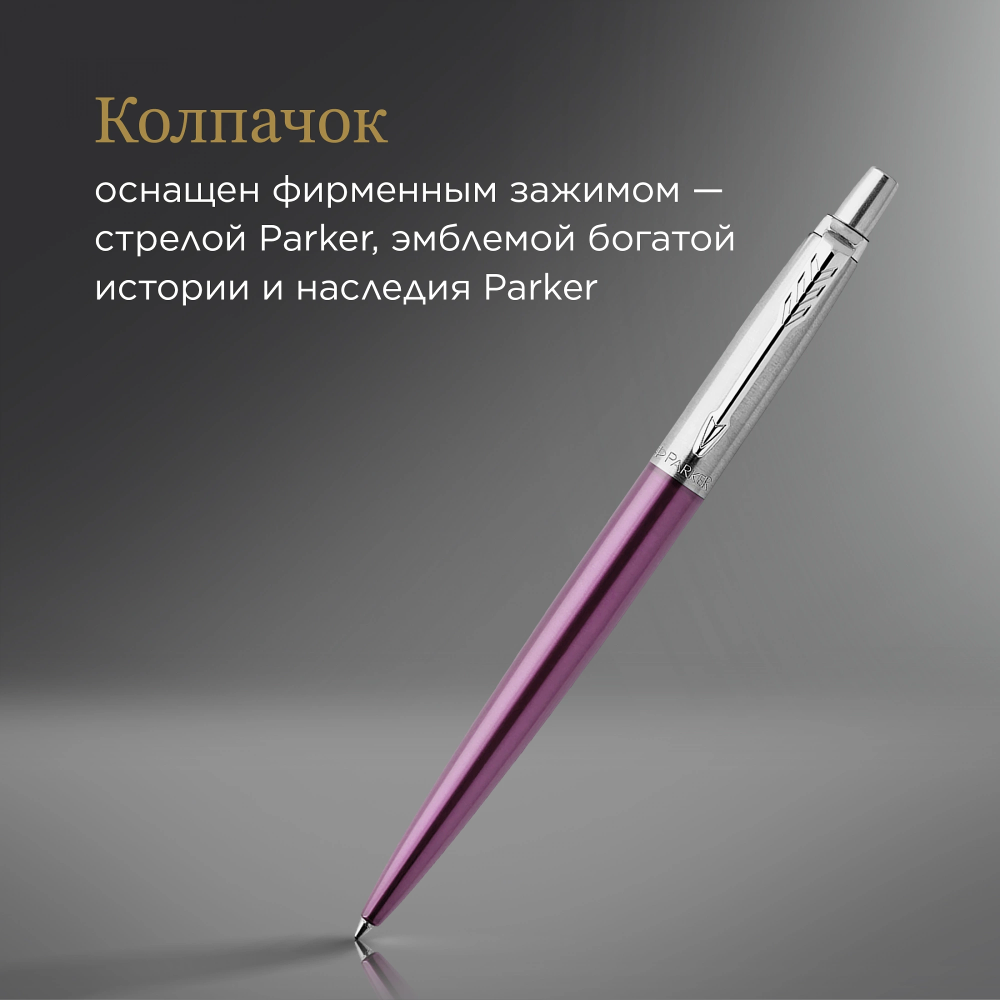 Обтекаемая форма корпуса Jotter Victoria Violet с четкими линиями - свежий взгляд на культовый дизайн PARKER Jotter. Корпус из нержавеющей стали с фиолетовой гладкой отделкой, колпачок из нержавеющей стали, изящно подчеркнутый блестящими деталями отделки и фирменным клипом в виде стрелы - эмблемой богатой истории и наследия Parker.