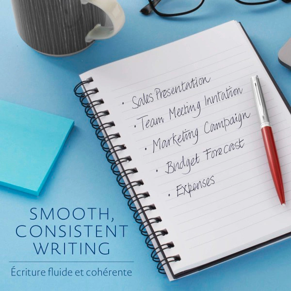 Смелые черные чернила создают яркое впечатление на странице. Тонкий пишущий узел идеально подходит для мелкого и точного почерка.