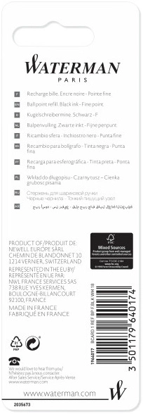 Сменный стержень для шариковых ручек Waterman в блистерной упаковке.