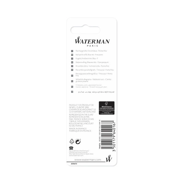 Сменный стержень для шариковых ручек Waterman в блистерной упаковке.