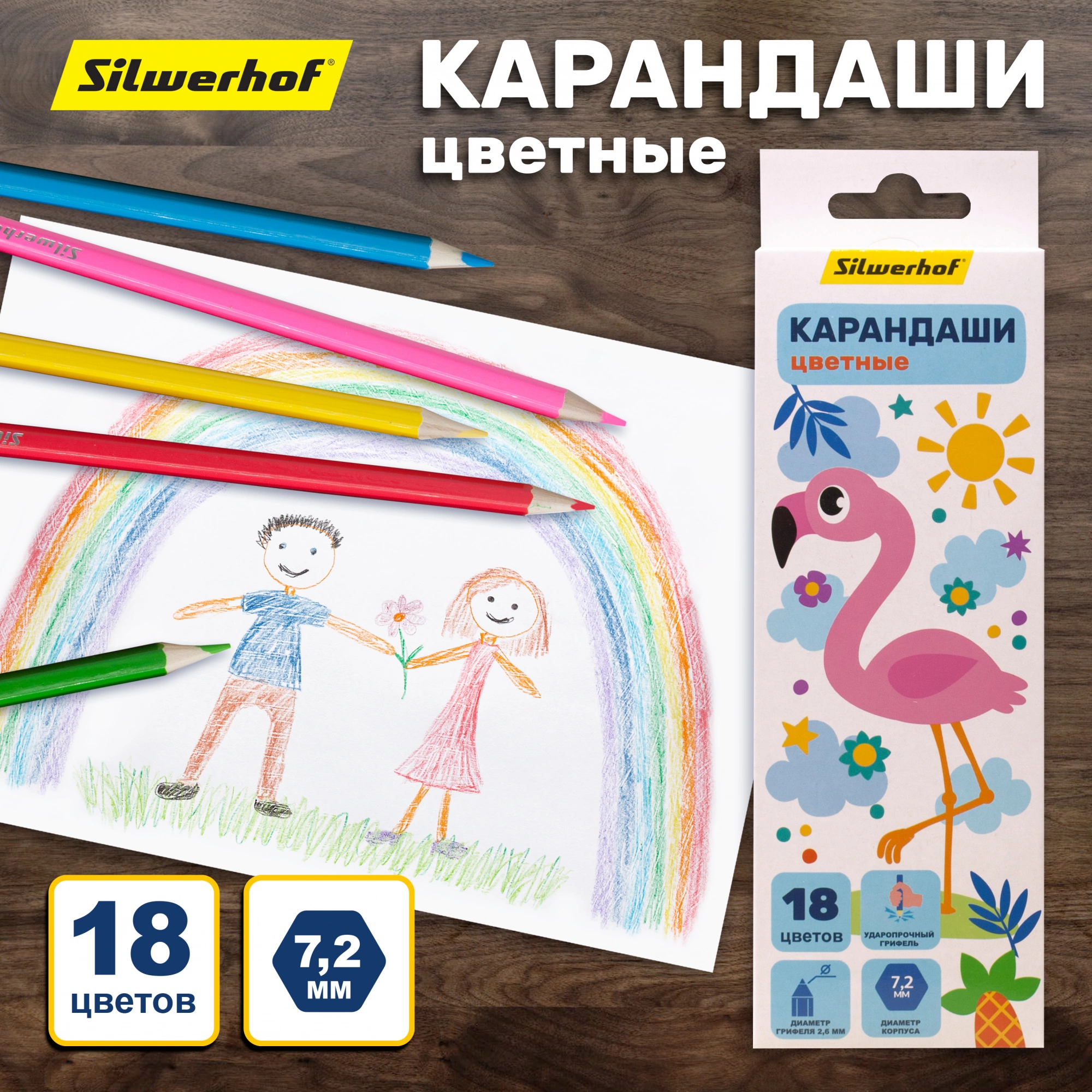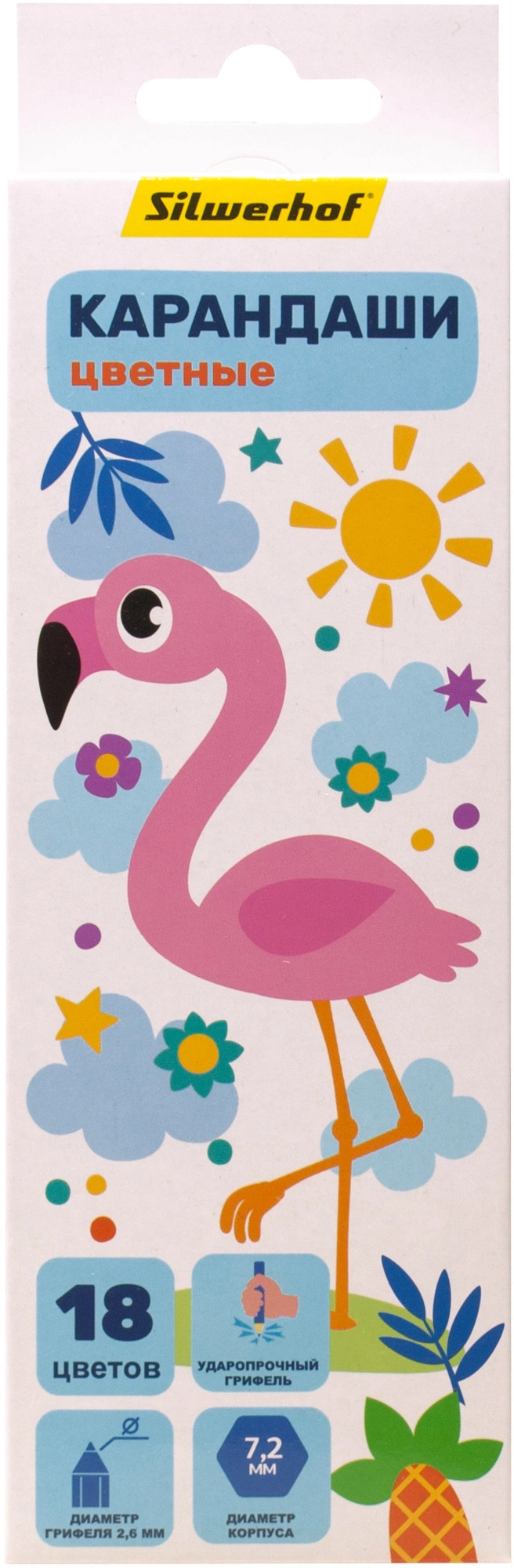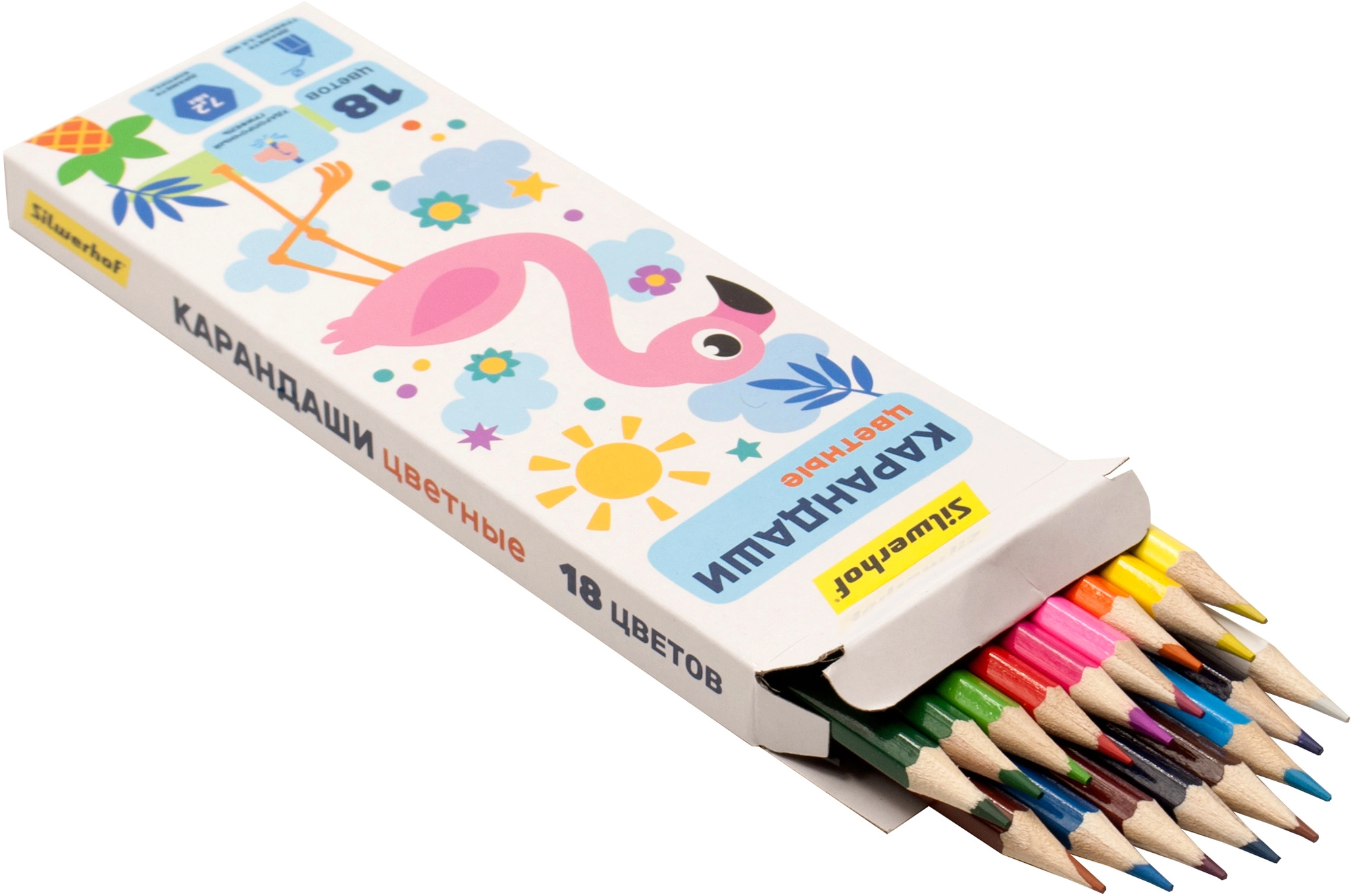 Карандаши цв. Silwerhof Веселые друзья 2.65мм шестигран. дерево ассорти 18цв. коробка/европод.