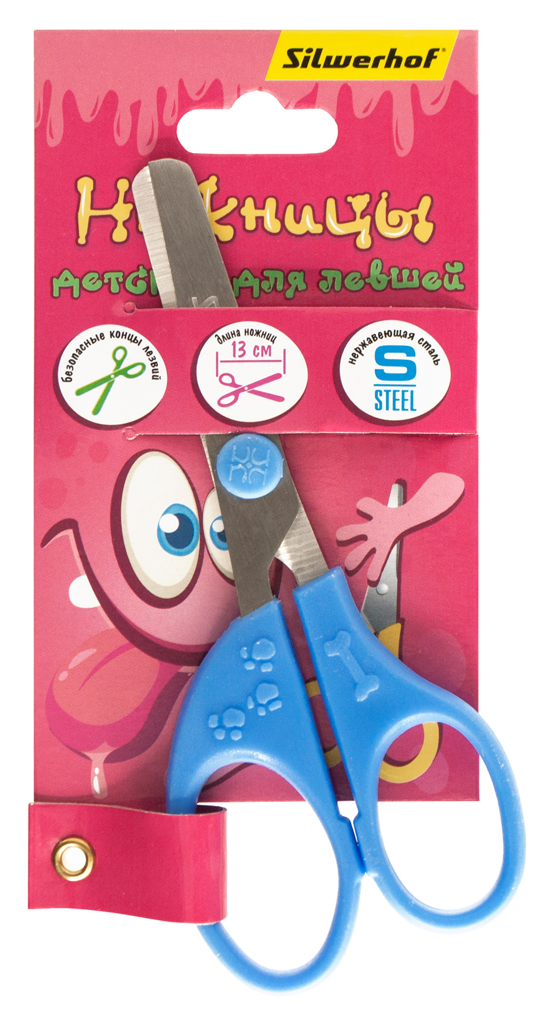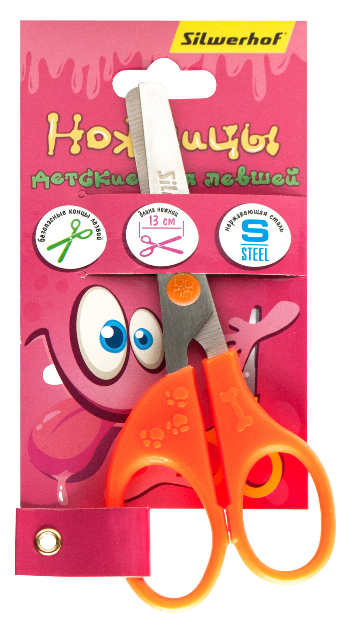 Ножницы для левшей Silwerhof Монстрики детские 130мм ручки пластиковые асим. ассорти
