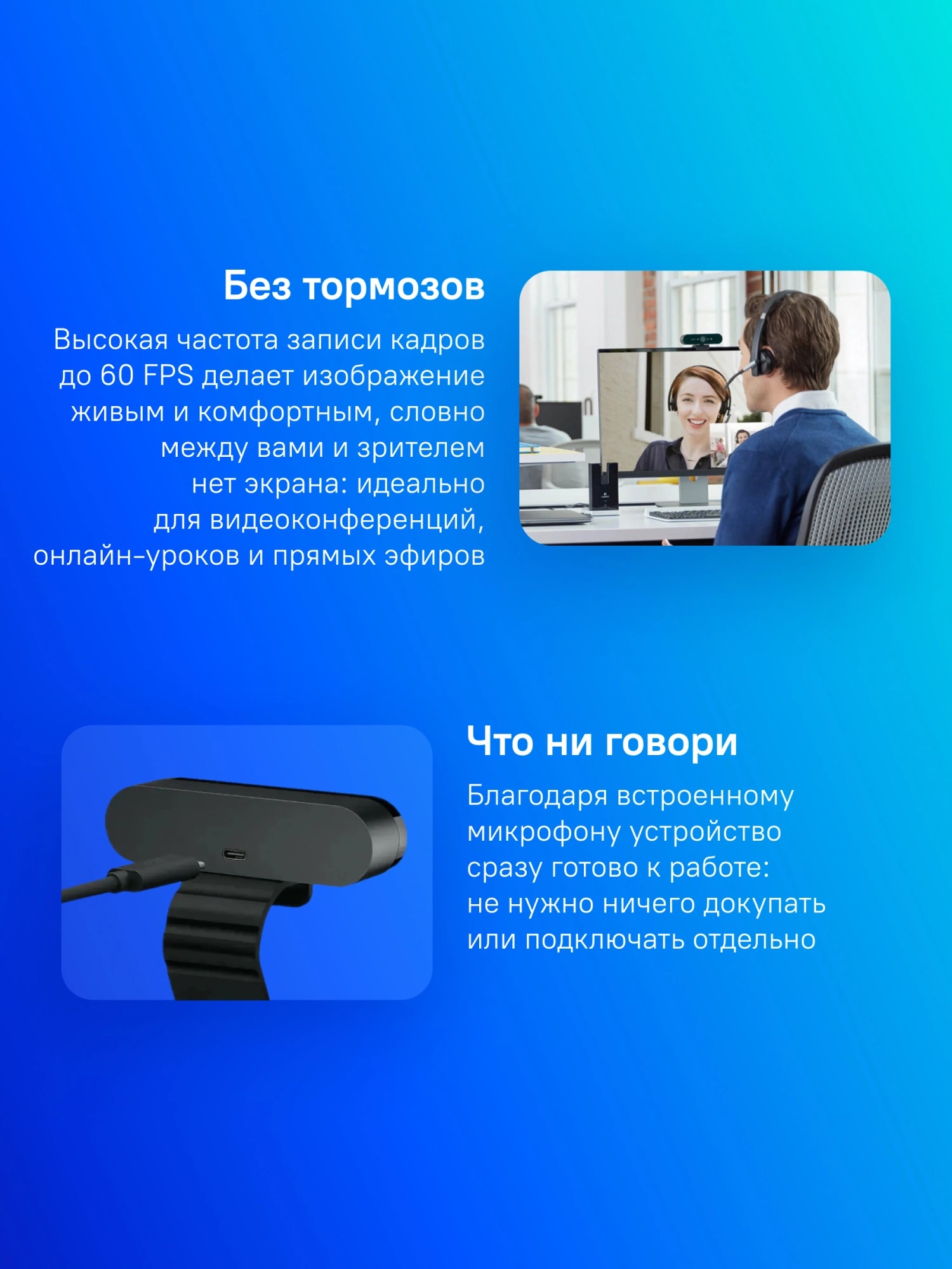 Видеовызовы в формате Ultra HD 4K,Full HD 1080p (до 1920x1080 пикселей при частоте 30 или 60 кадров в секунду),HD 720p (до 1280x720 пикселей при частоте 30, 60 или 90 кадров в секунду).USB-подключение с поддержкой Plug-and-play.Автофокусировка. Угол обзора 65/78/90°