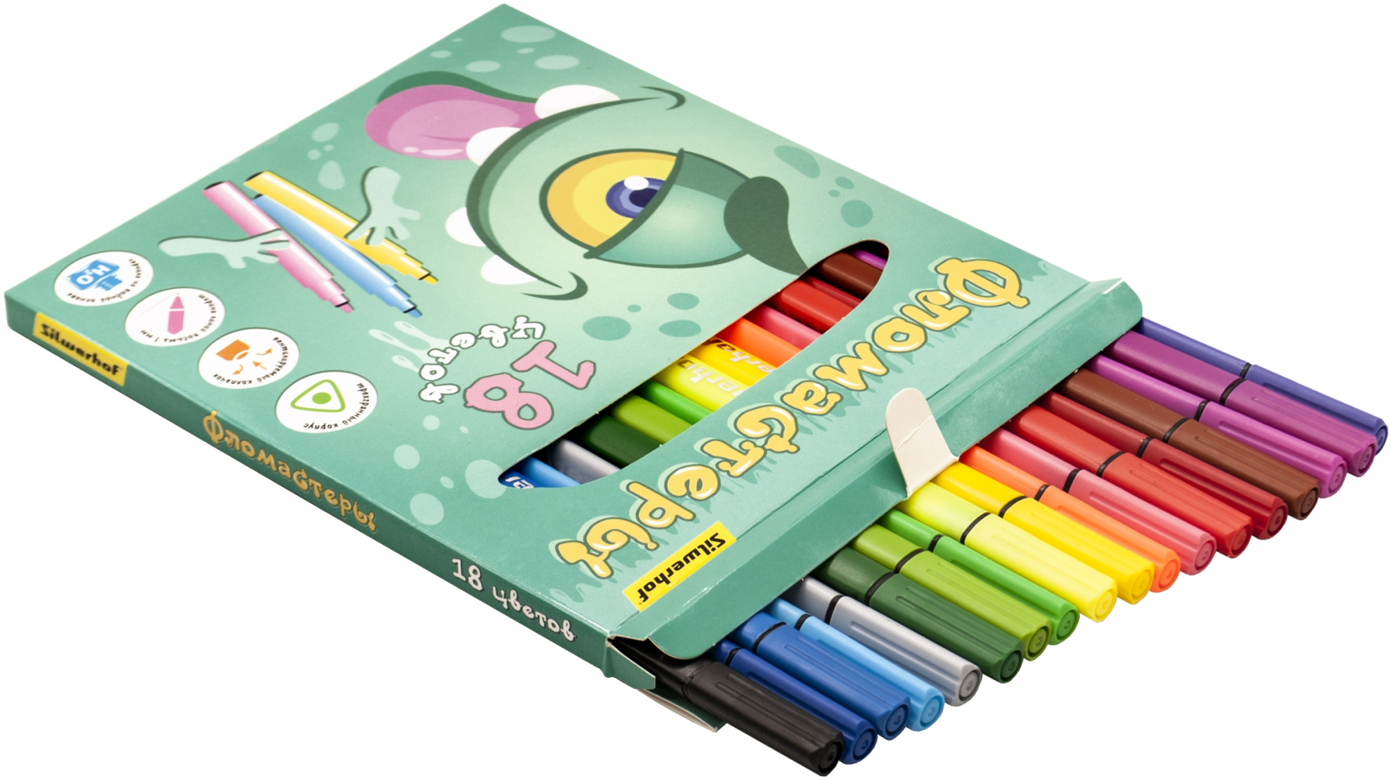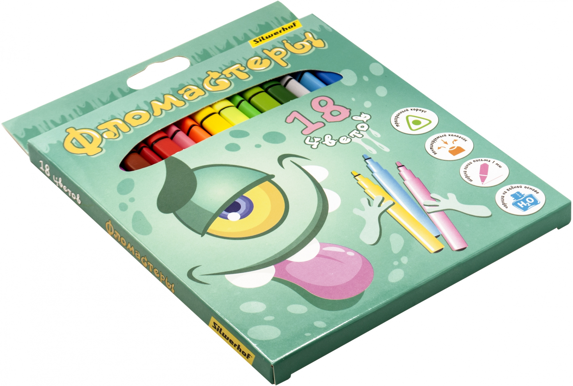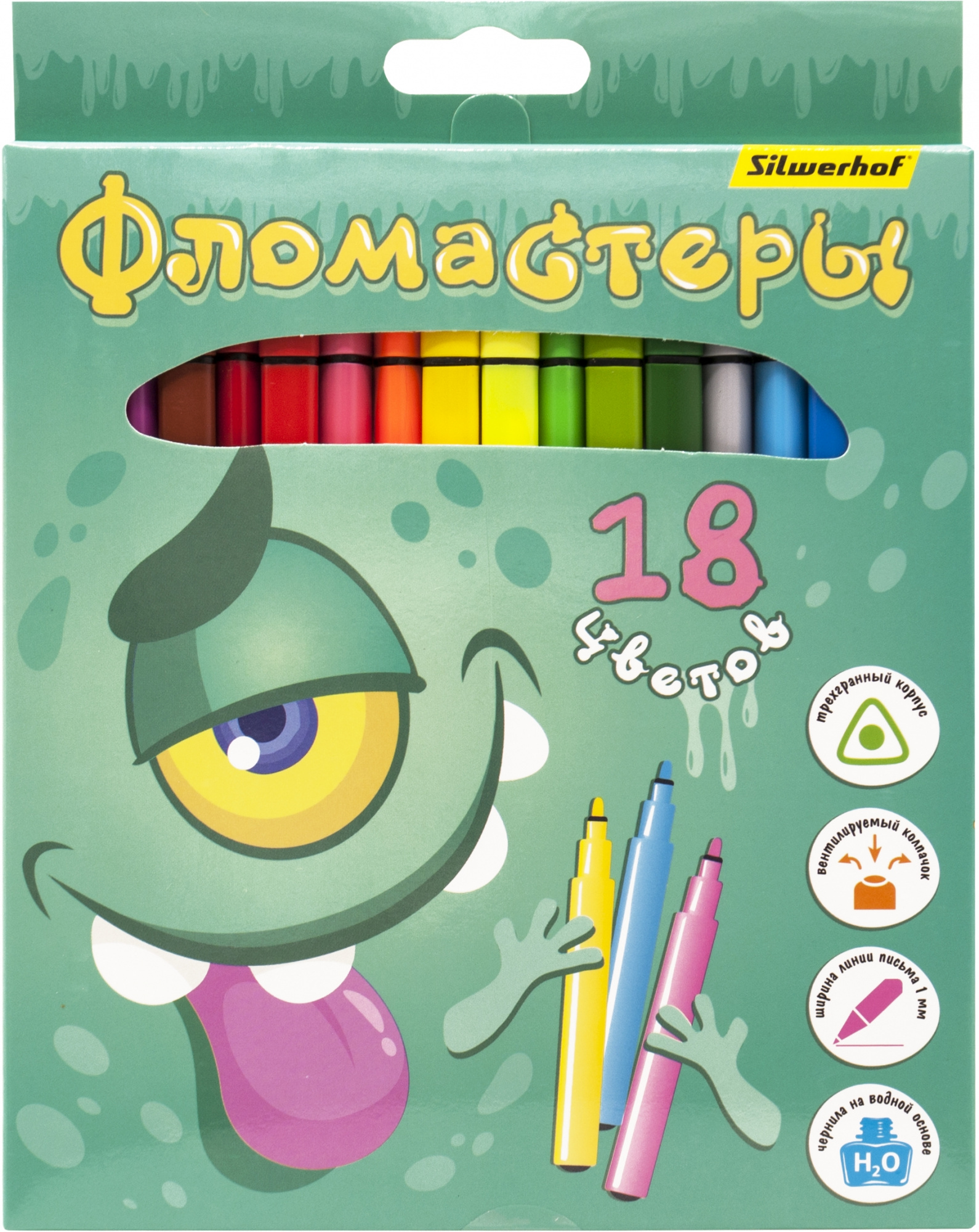 Фломастеры Silwerhof Монстрики 9мм 167мм трехгр. Вентилируемый 18цв.