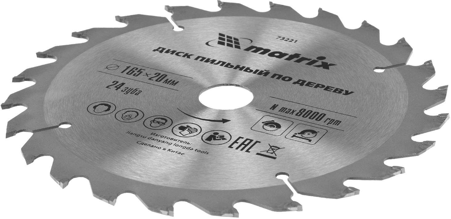 Пильный диск по дереву Matrix ф165х20 мм. 73221 с 24 зубьями и переходным кольцом 20/16 применяется в качестве оснастки на циркулярных и торцовочных пилах с соответствующим внутренним и внешним диаметром.