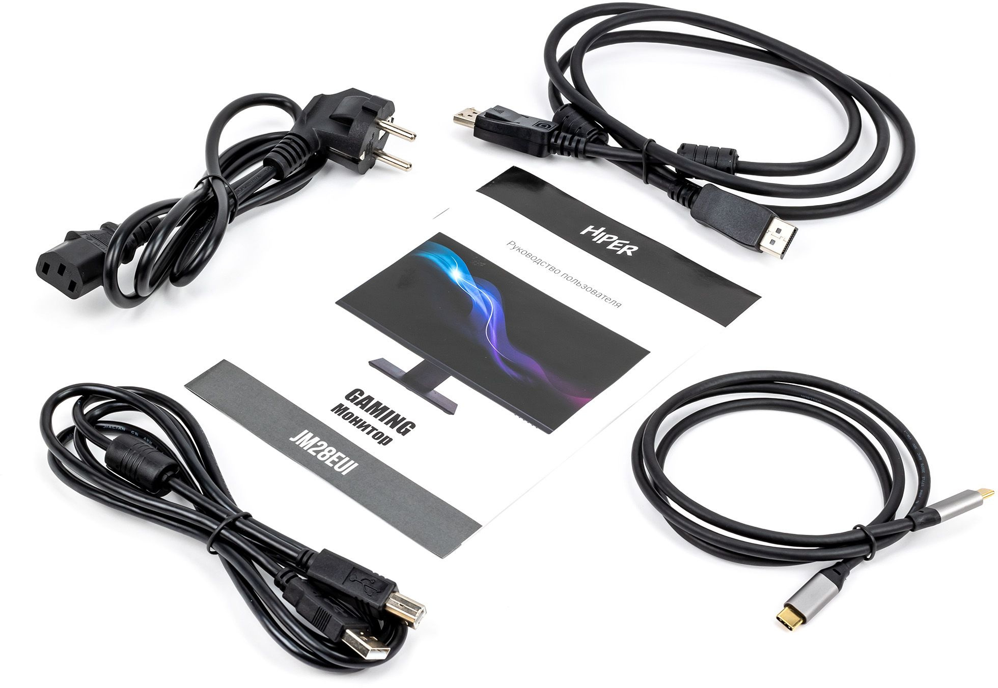 Монитор, подставка, кабель питания, DP кабель, USB-C кабель, кабель USB-A/USB-B, руководство пользователя